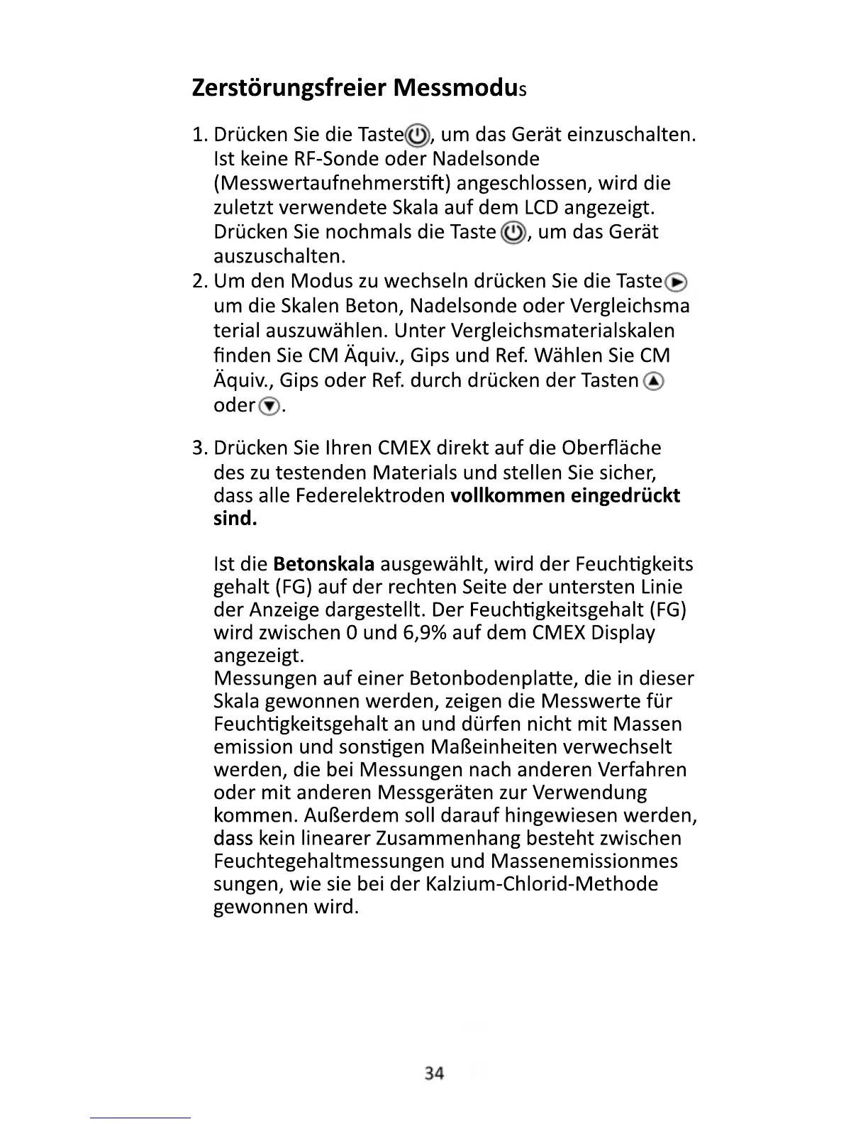Ist die Betonskala ausgewählt, wird der Feuchgkeits