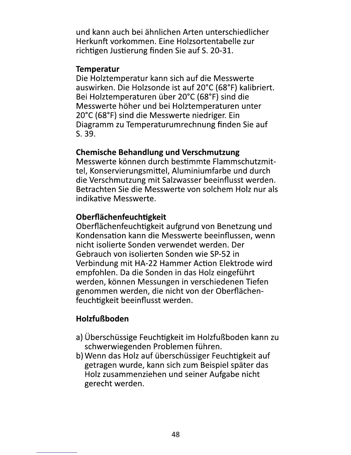 auswirken. Die Holzsonde ist auf 20°C (68°F) kalibriert.