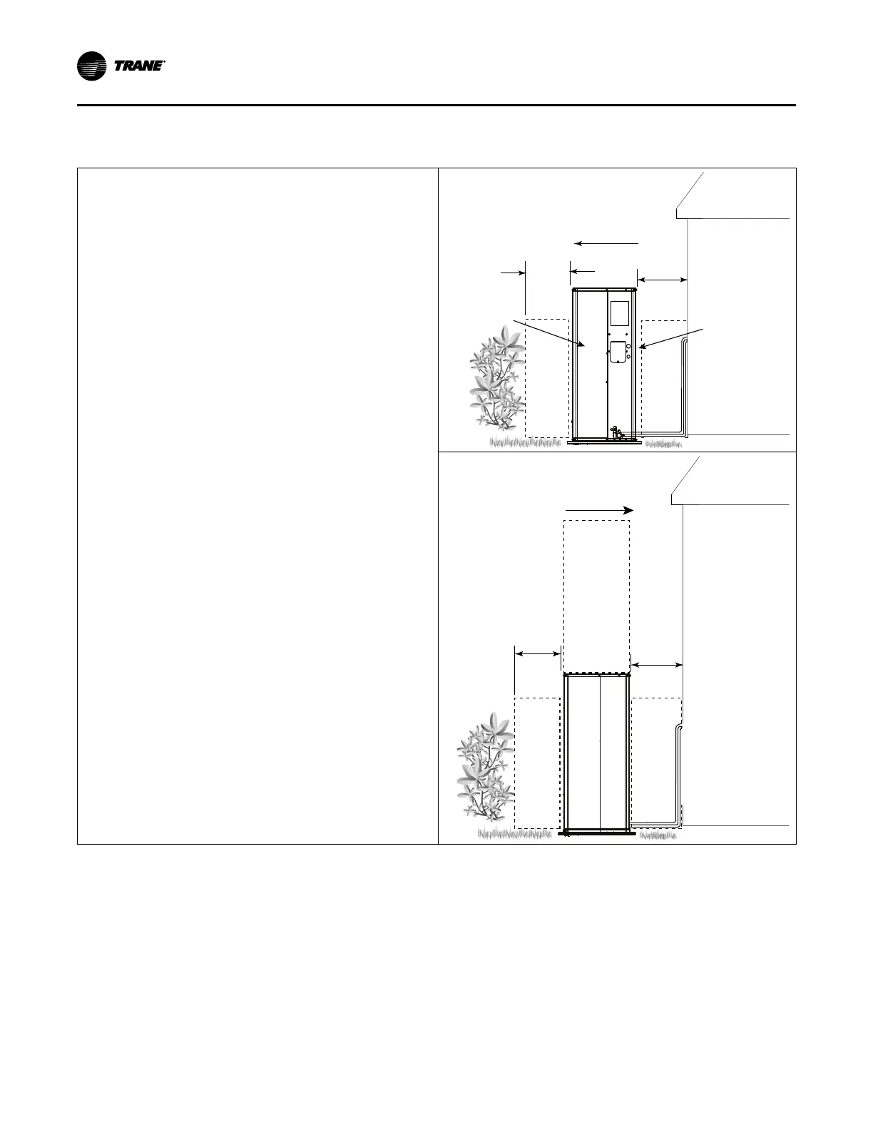 • The coil side of the outdoor unit must be a minimum of 6” from