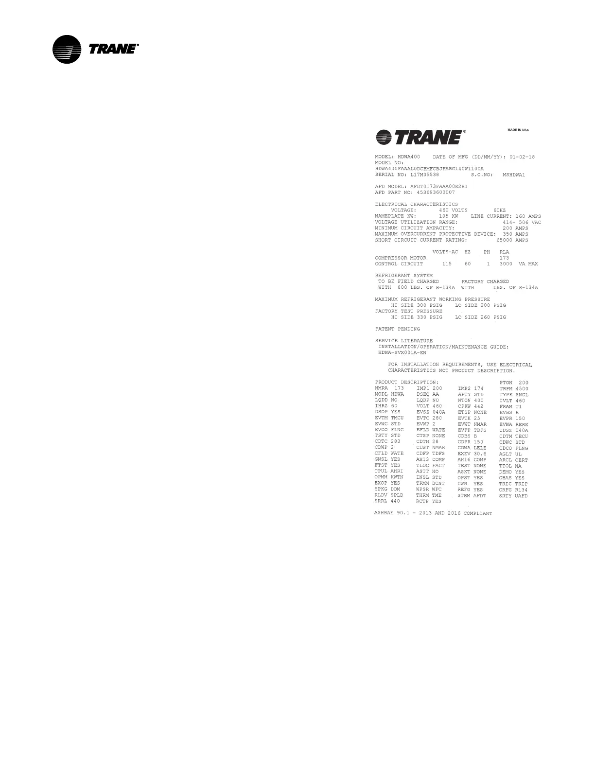 Figure 1. Typical unit nameplate