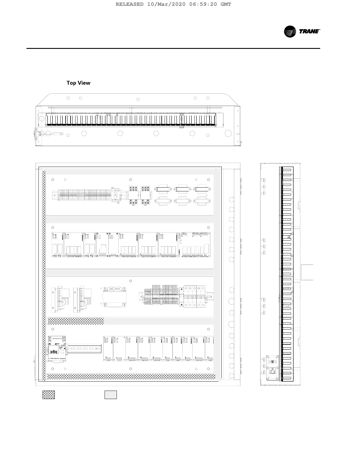 Figure 19. Control panel - Tracer AdaptiView main unit assembly (showing low voltage and higher voltage areas for