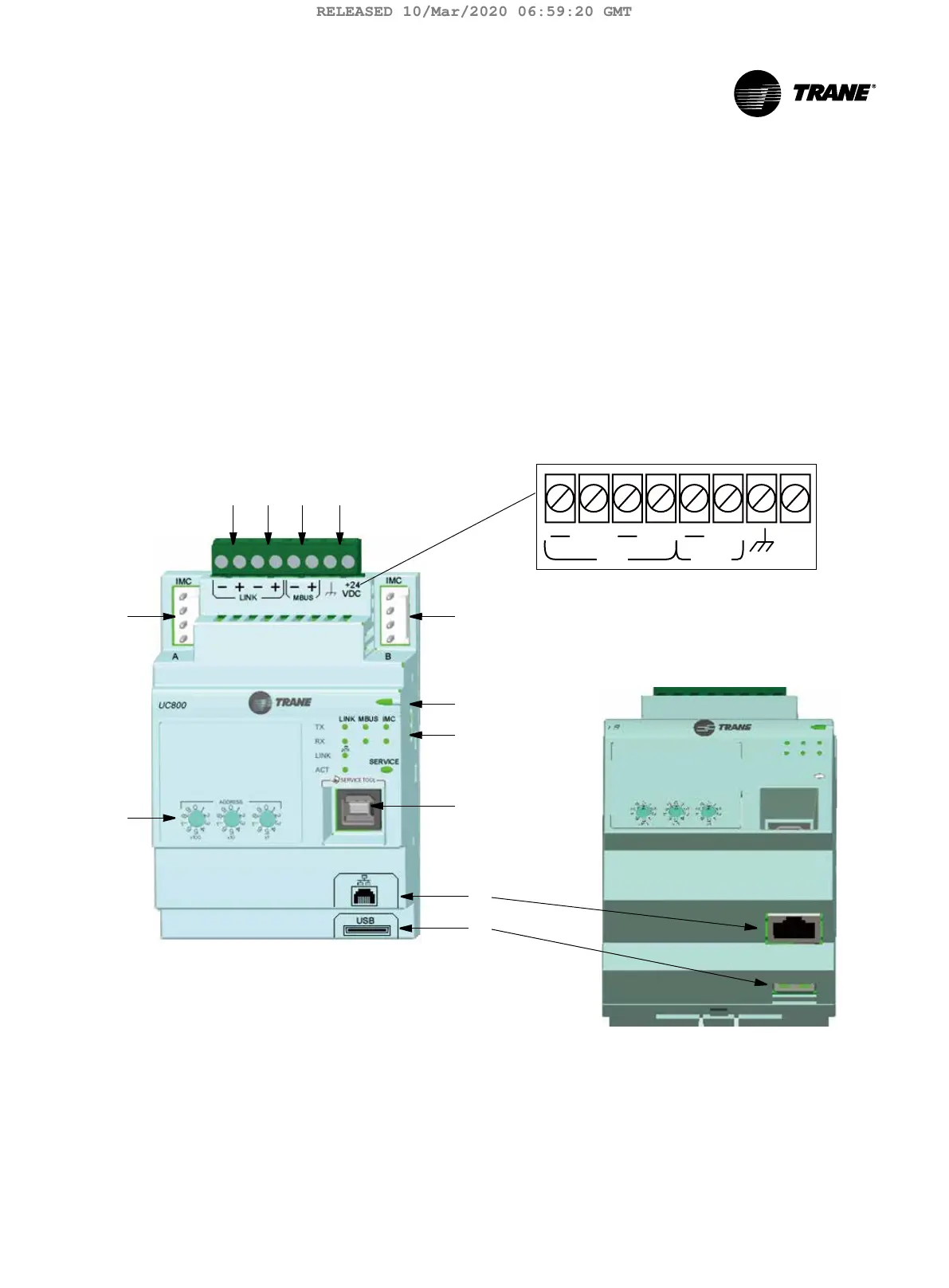 10. Ethernet connection for the Tracer AdaptiView display (protocol