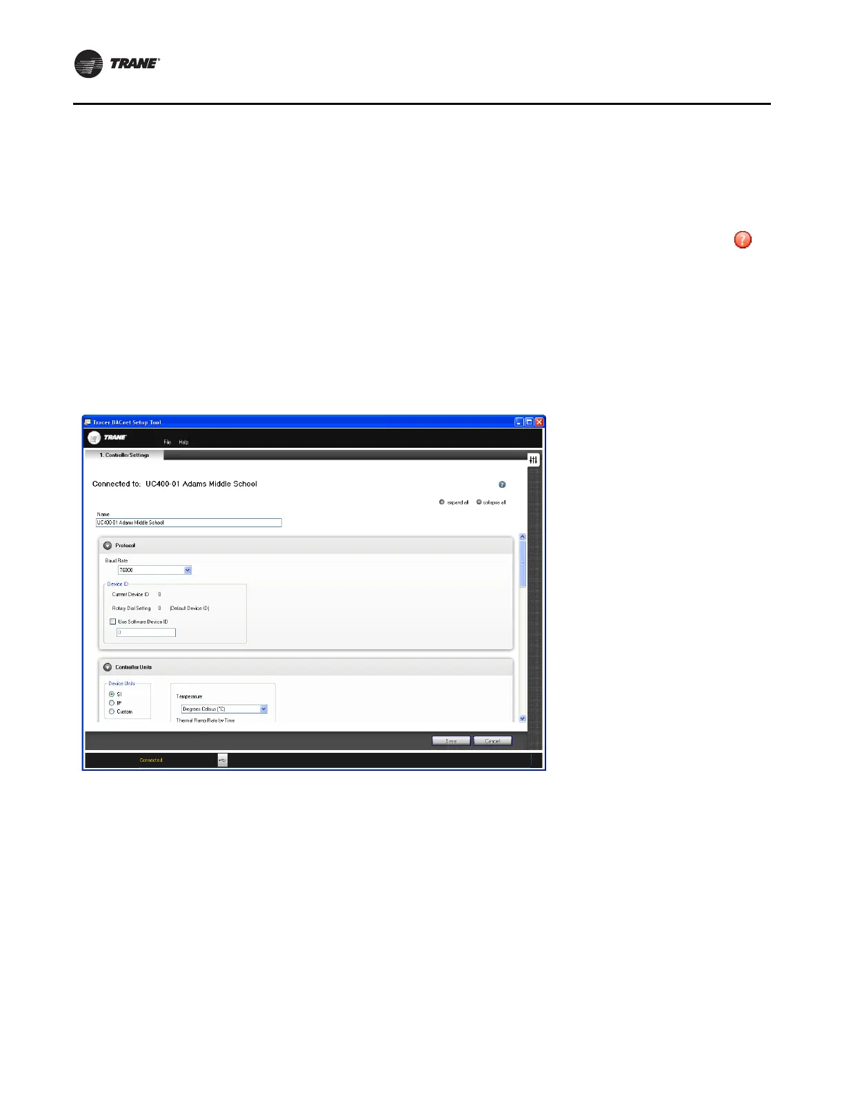 Figure 13. BACnet Setup Tool Controller Settings screen (connected to a UC400 as an example)