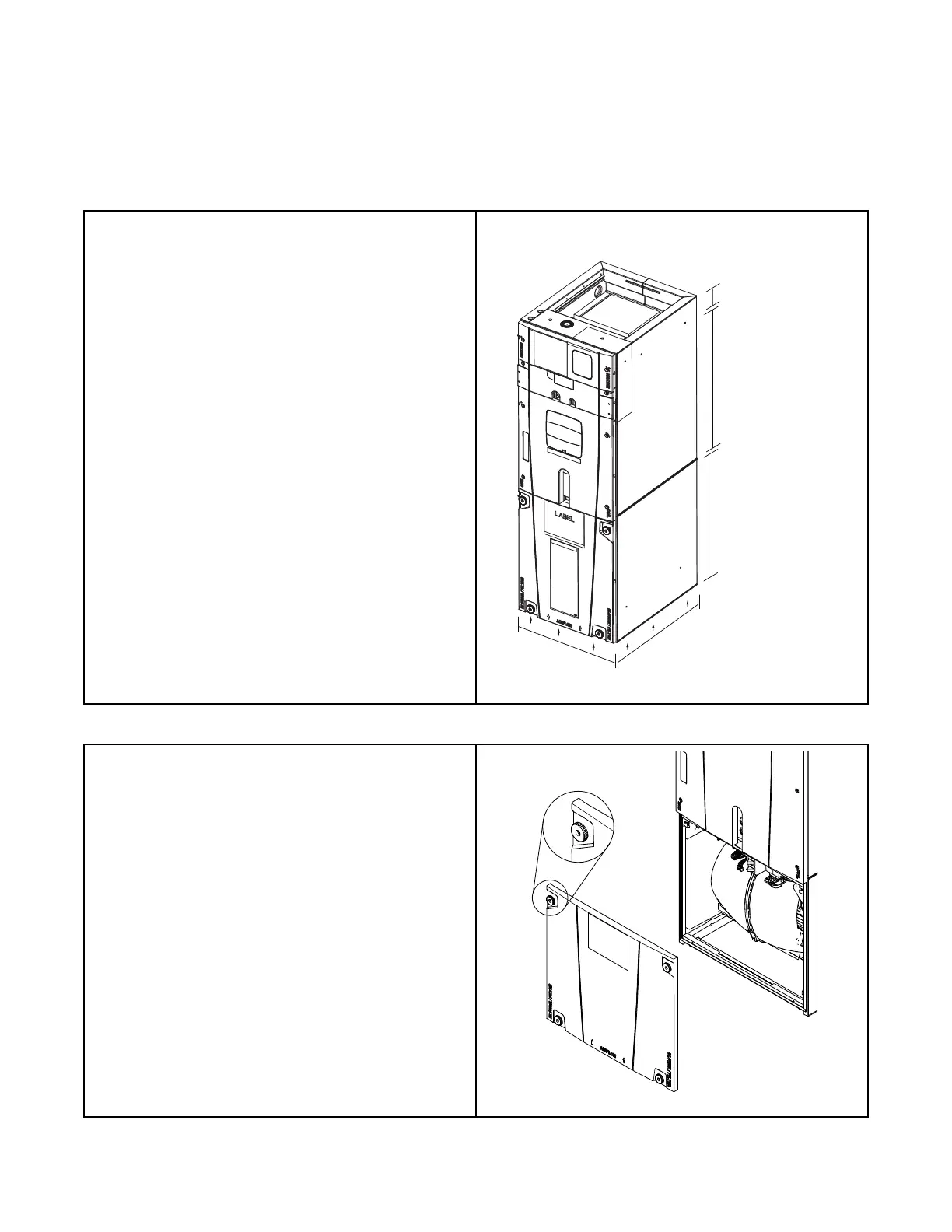 The unit contains four (4) access panels: Blower/Filter, Coil, Line Set,
