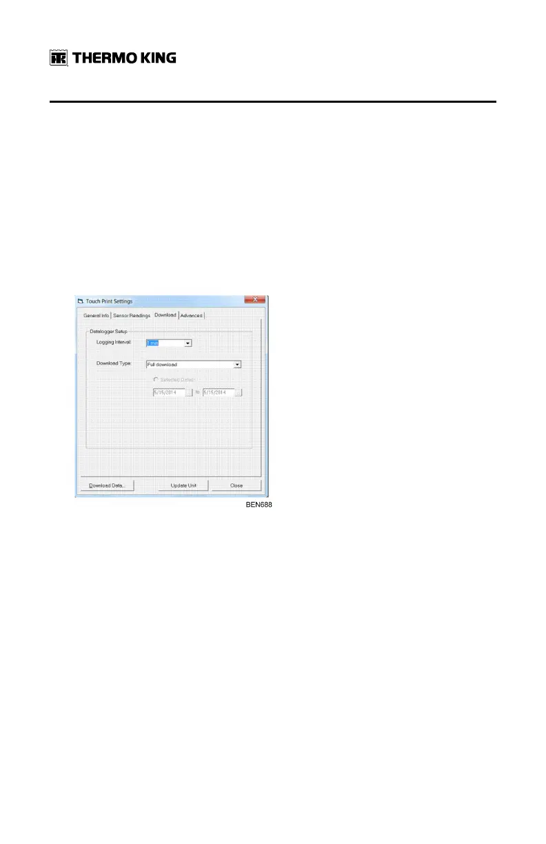 TouchLog flash memory. 3 types of download are available: