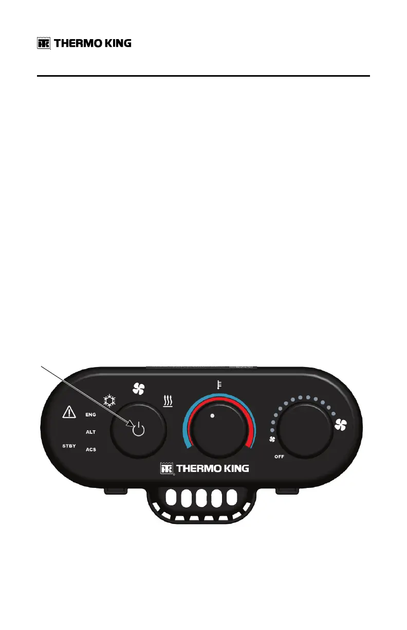 The On/Off Button is under the Mode Selector knob on the HMI. It provides