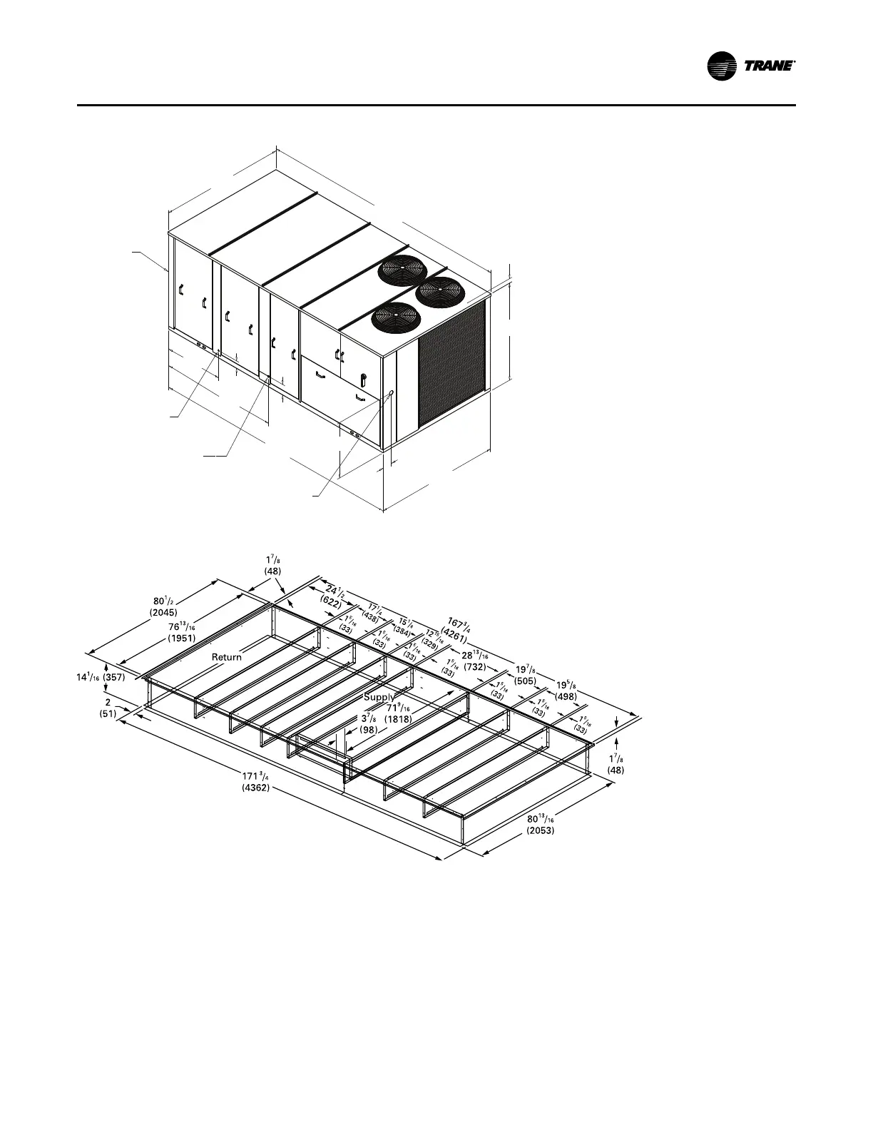 Figure 4. Curb assembly, 60 Hz 27.5-35, 50 Hz 23-29 tons (TC, TE, YC low heat)