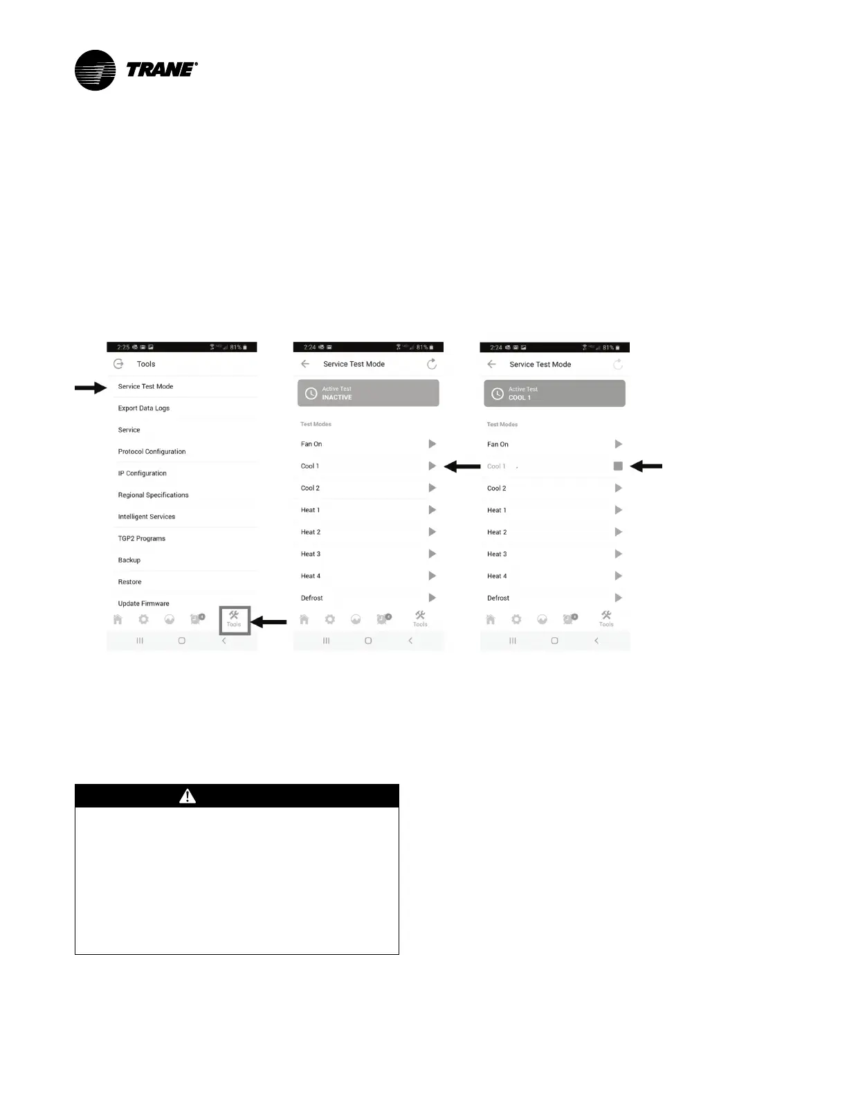 troubleshooting. The user can initiate Service Test Mode