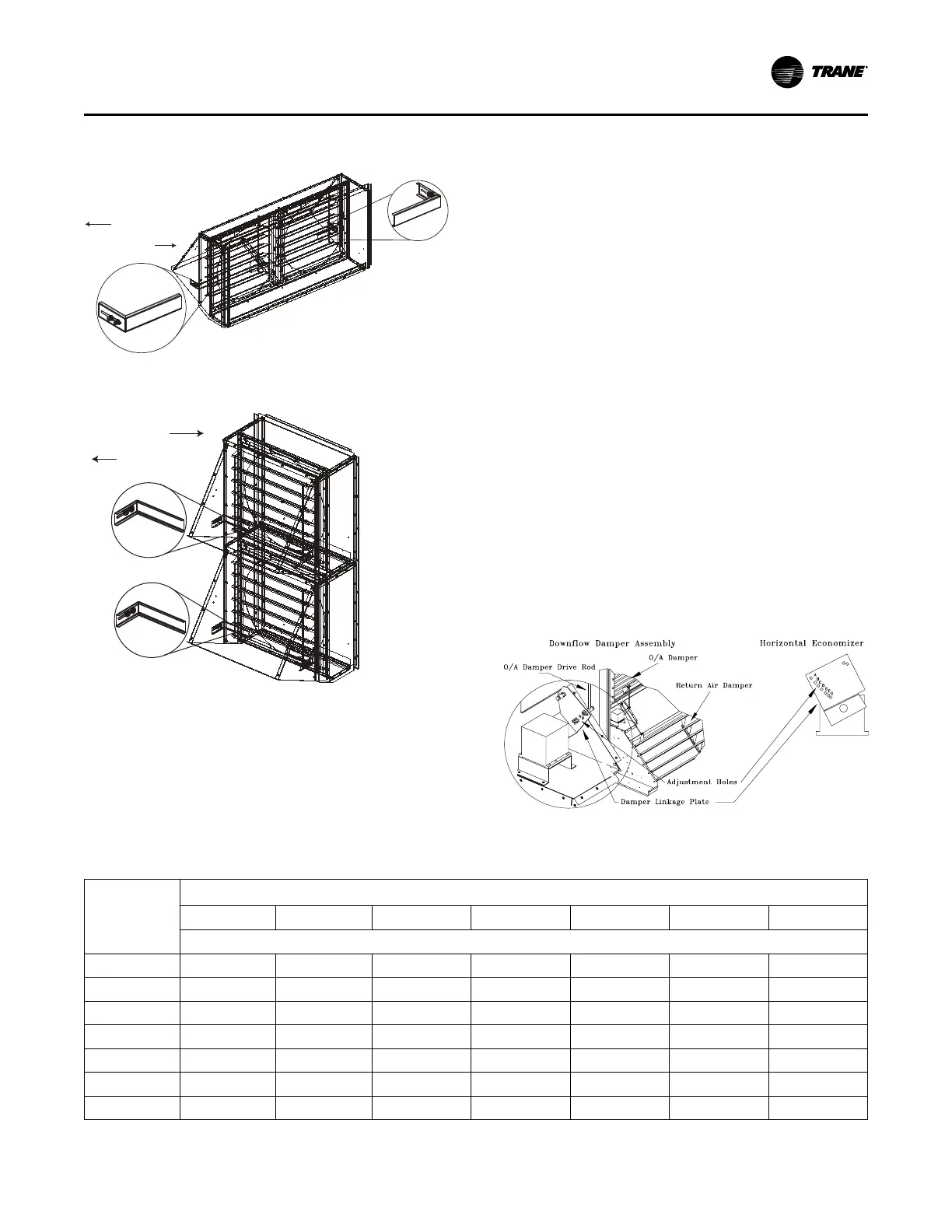 Table 23. 27.5 - 35 Ton downflow economizer (O/A) damper static pressure setup
