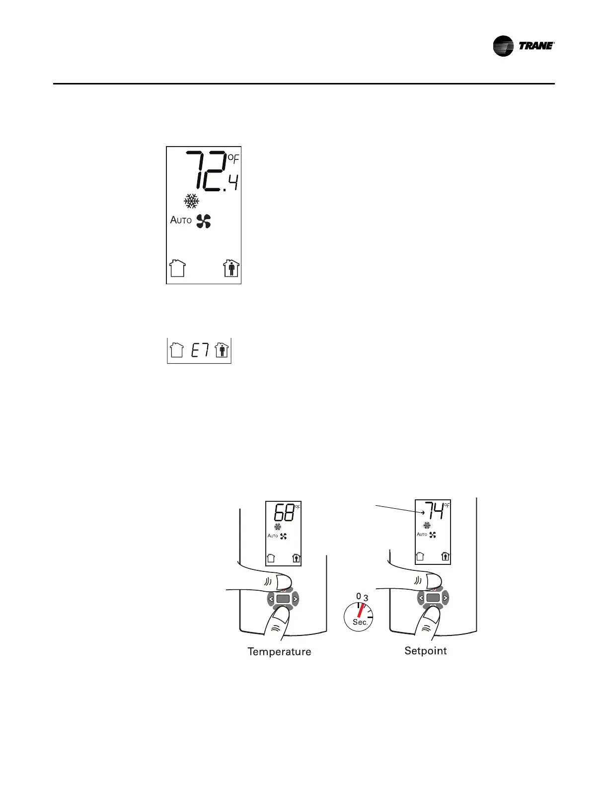 If an error code exists, it appears at the bottom of the display between the occupancy symbols,