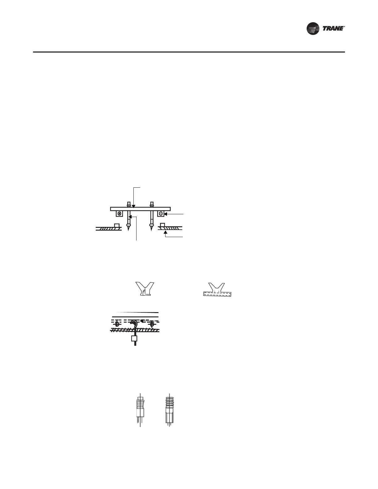 • Hanging ceiling rods/supports will vary according to each individual construction. Always
