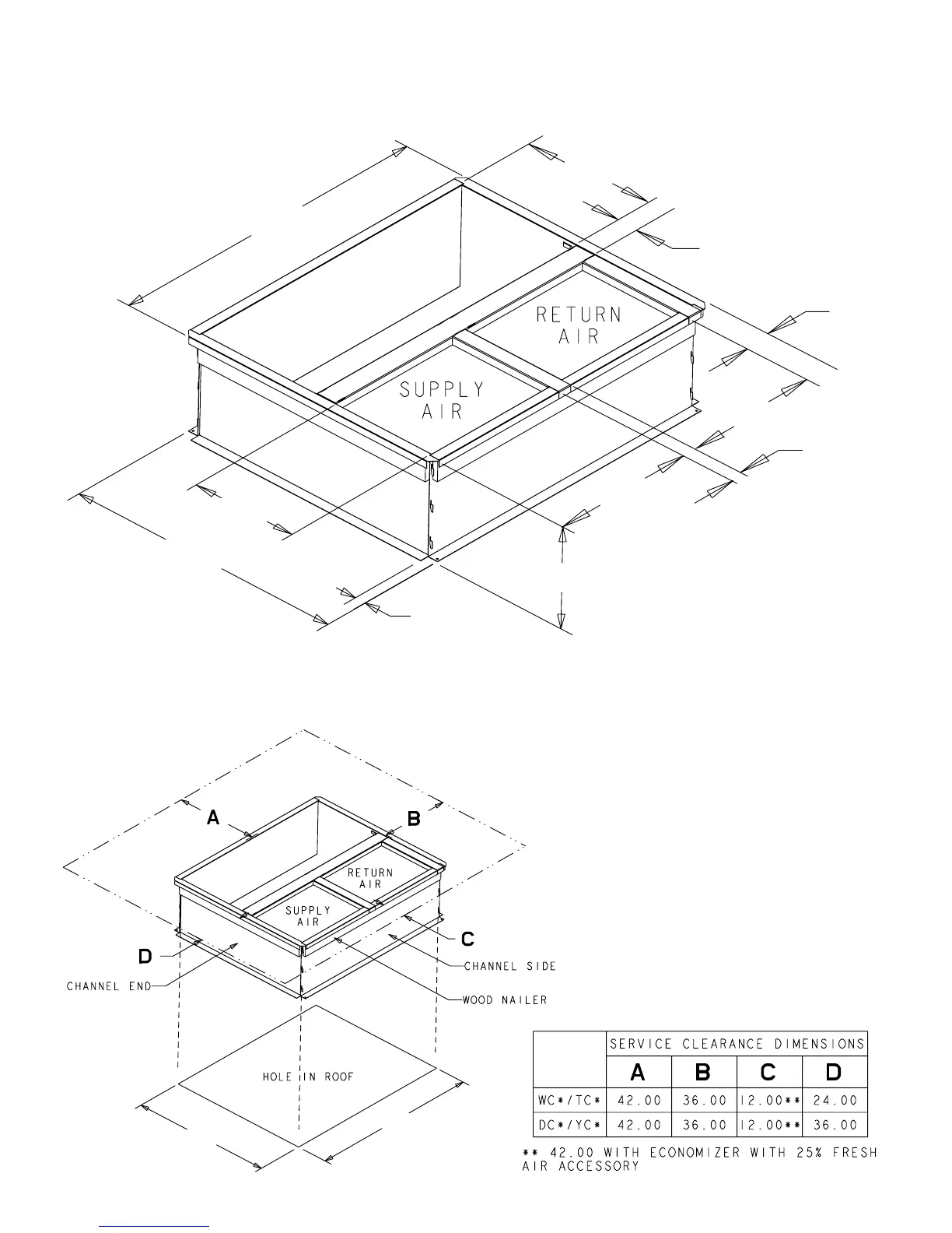 BAYCURB050A Full Perimeter Roof Mounting Curb for *****024-036
