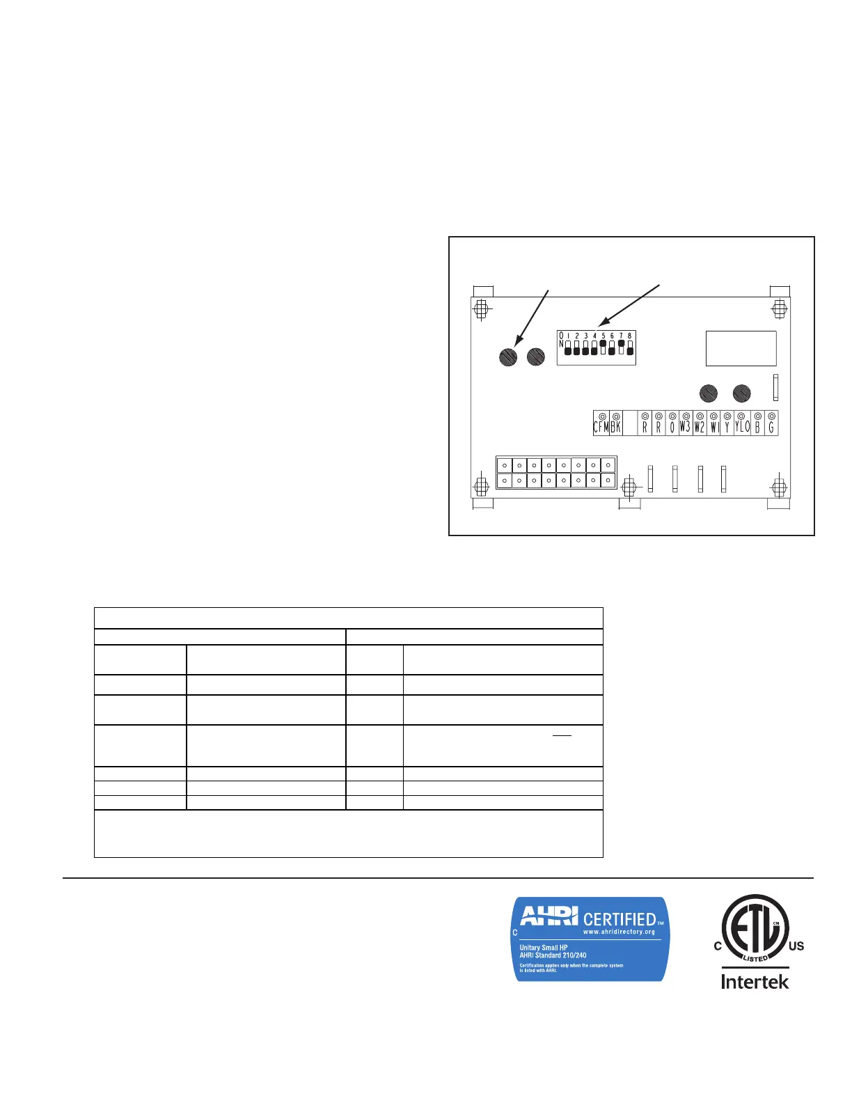 Table. Blower speed changes are made on the ECM Fan Control