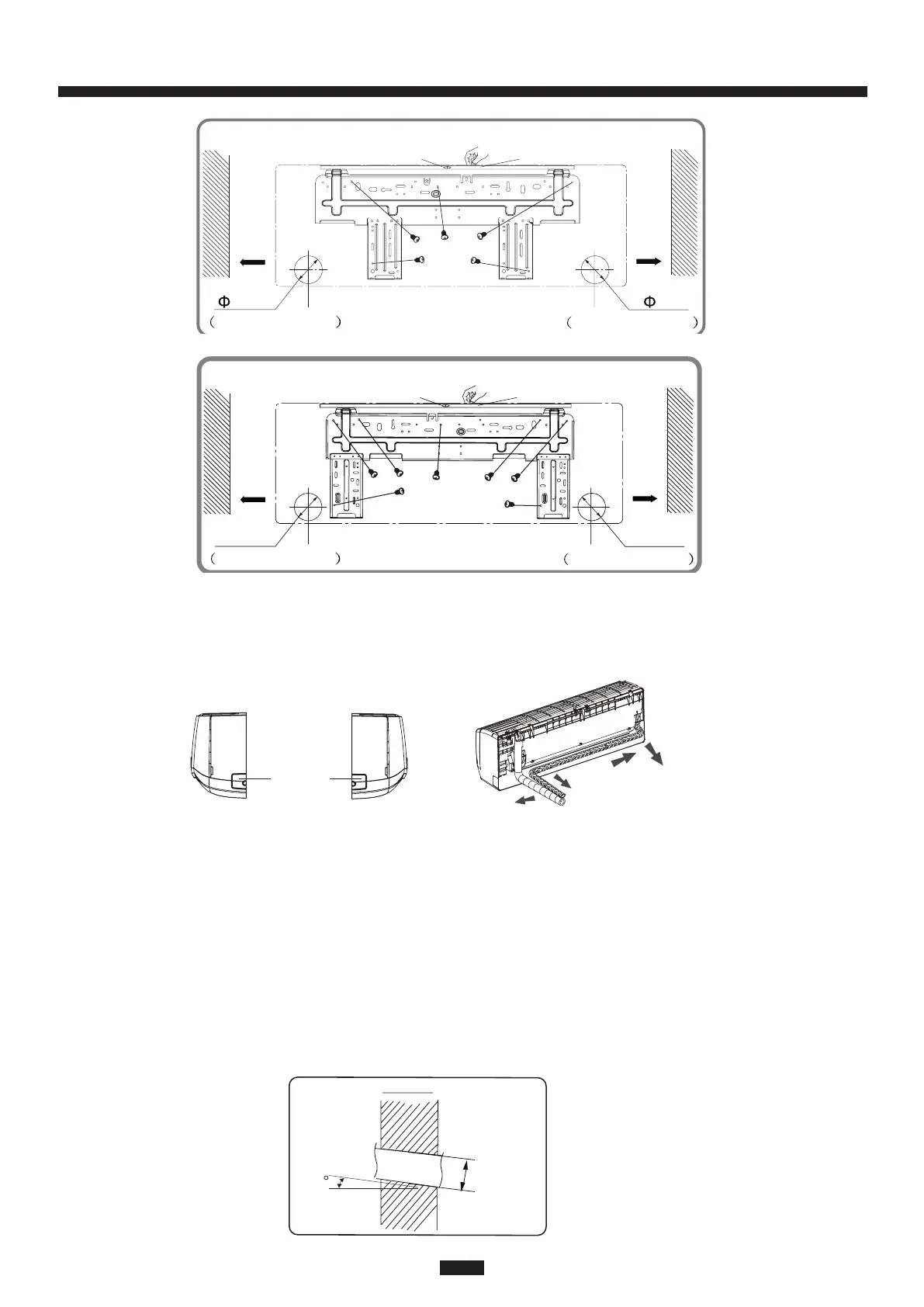 position. In order to drain smoothly, slant the piping hole on the wall slightly downward to the