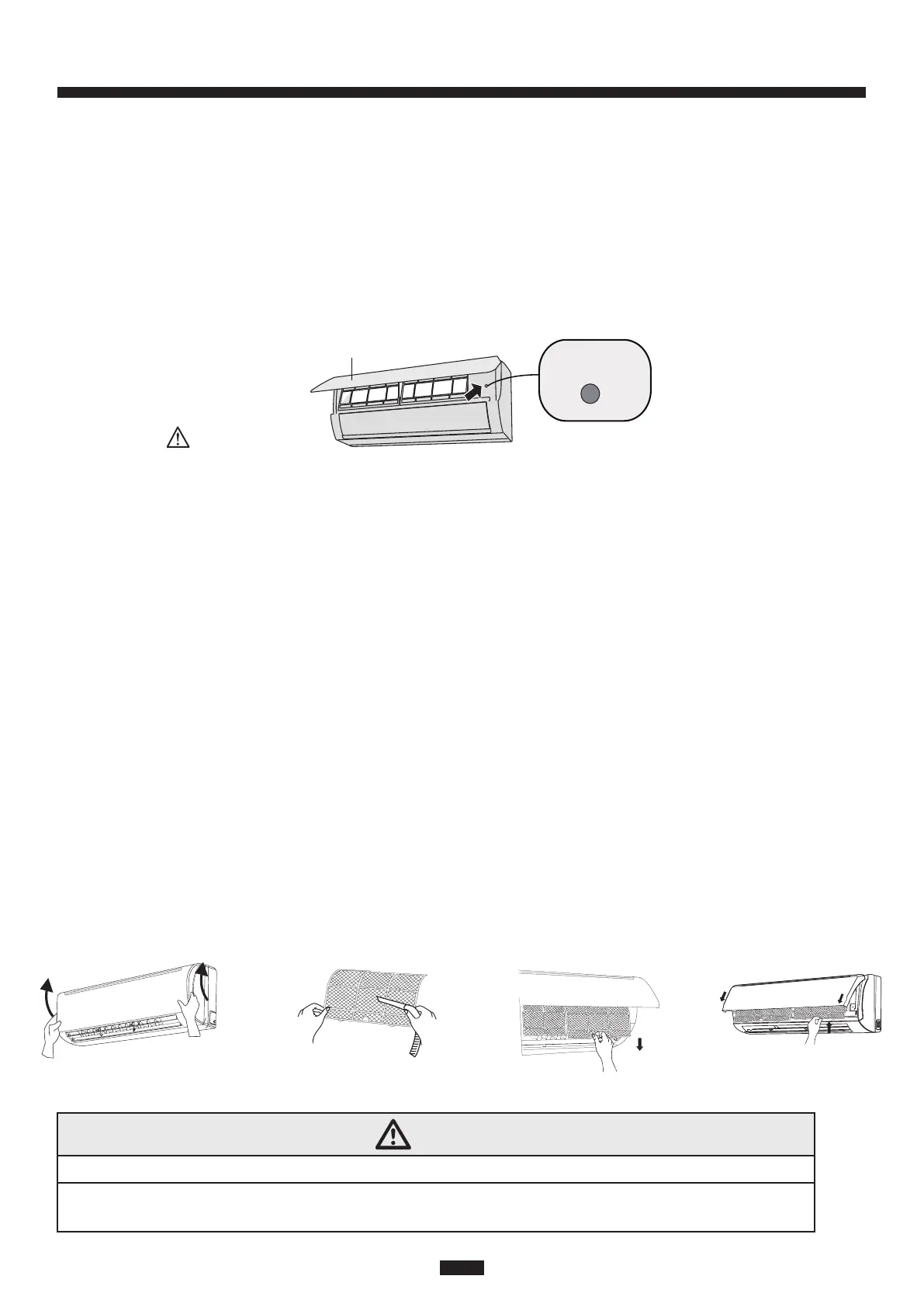 1. After removing the filter, do not touch the evaporator fins to avoid injury.