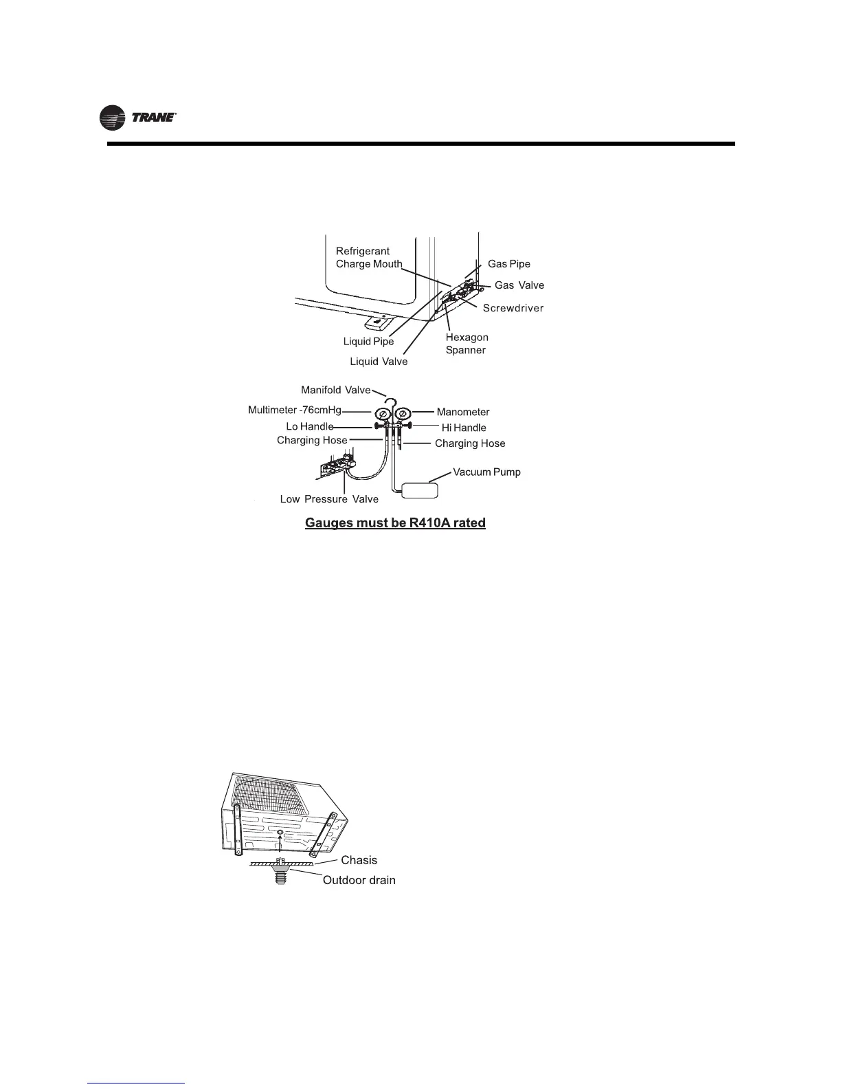 Install the outdoor drai a 25mm hole on the base plate, and joint the drain hose to the