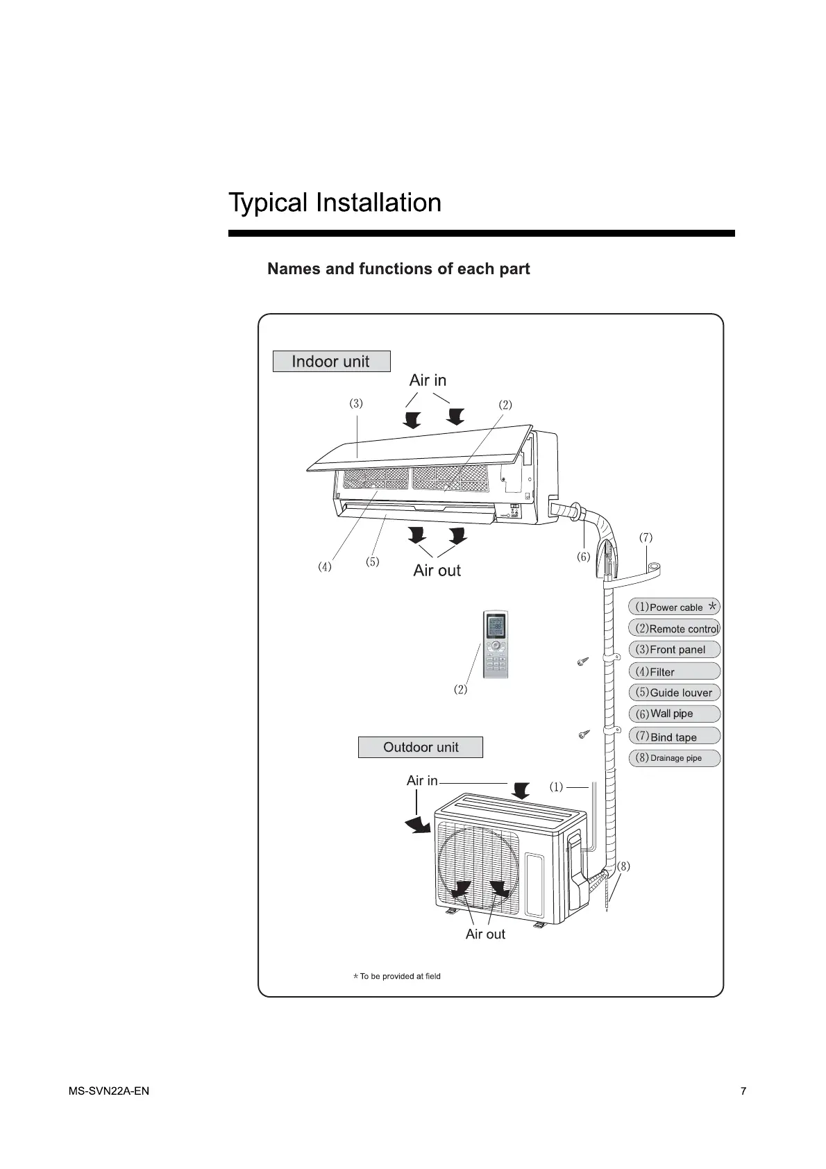 Trane 4MYW6-A - Typical Installation Overview; Indoor and Outdoor Unit Component Identification