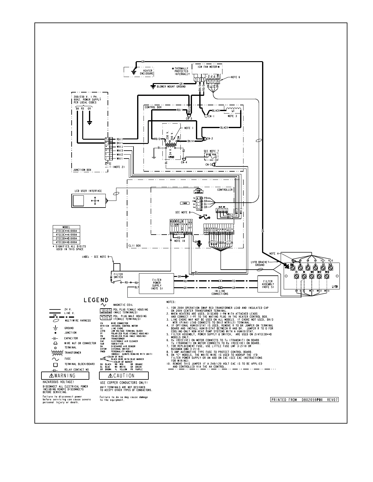 Trane 4TEE3C49A1000A - Wiring Diagram and Legend; Wiring Diagram Details; Wiring Legend and Notes