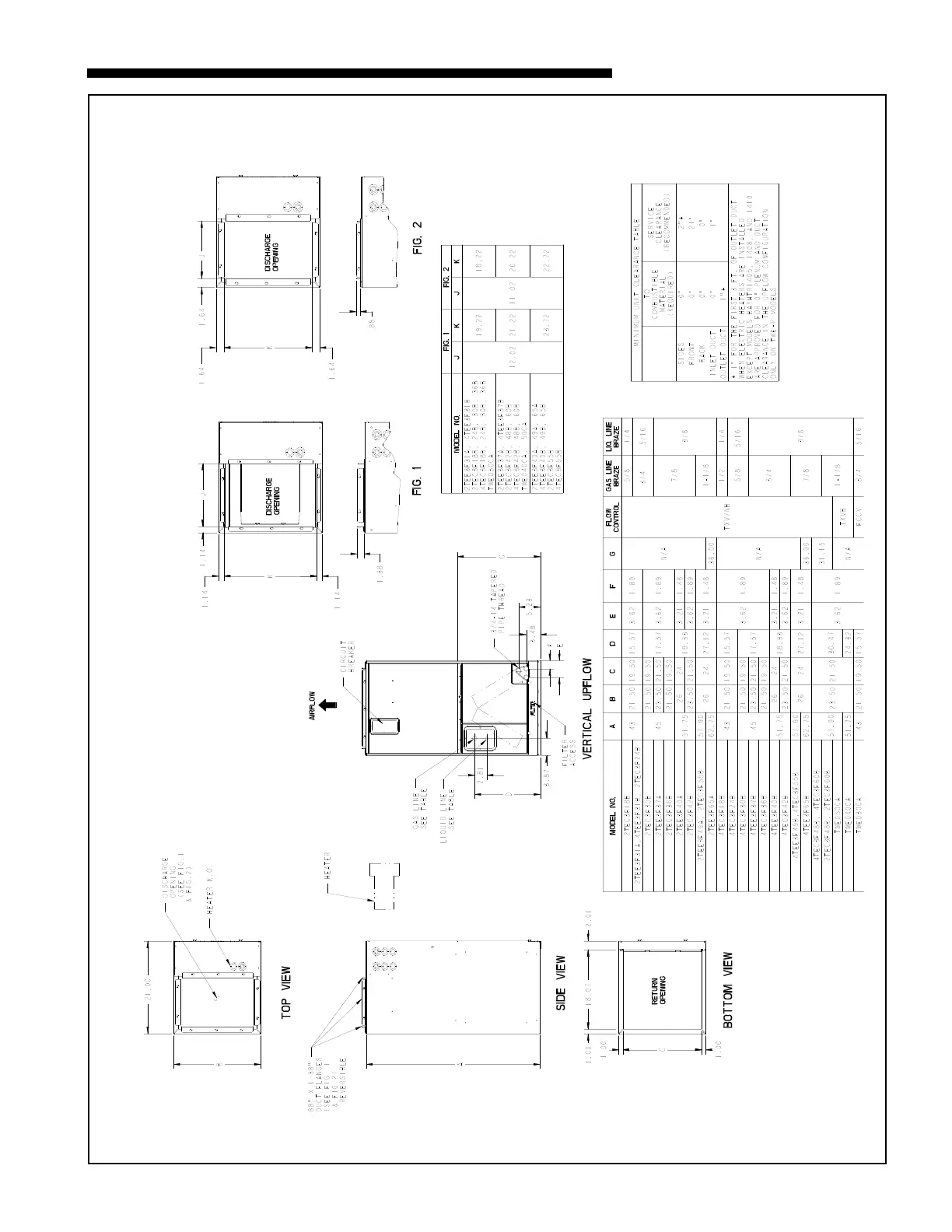 Trane 4TEE3F49B1000A - Outline Drawing; Vertical Upflow Dimensions; Minimum Unit Clearances