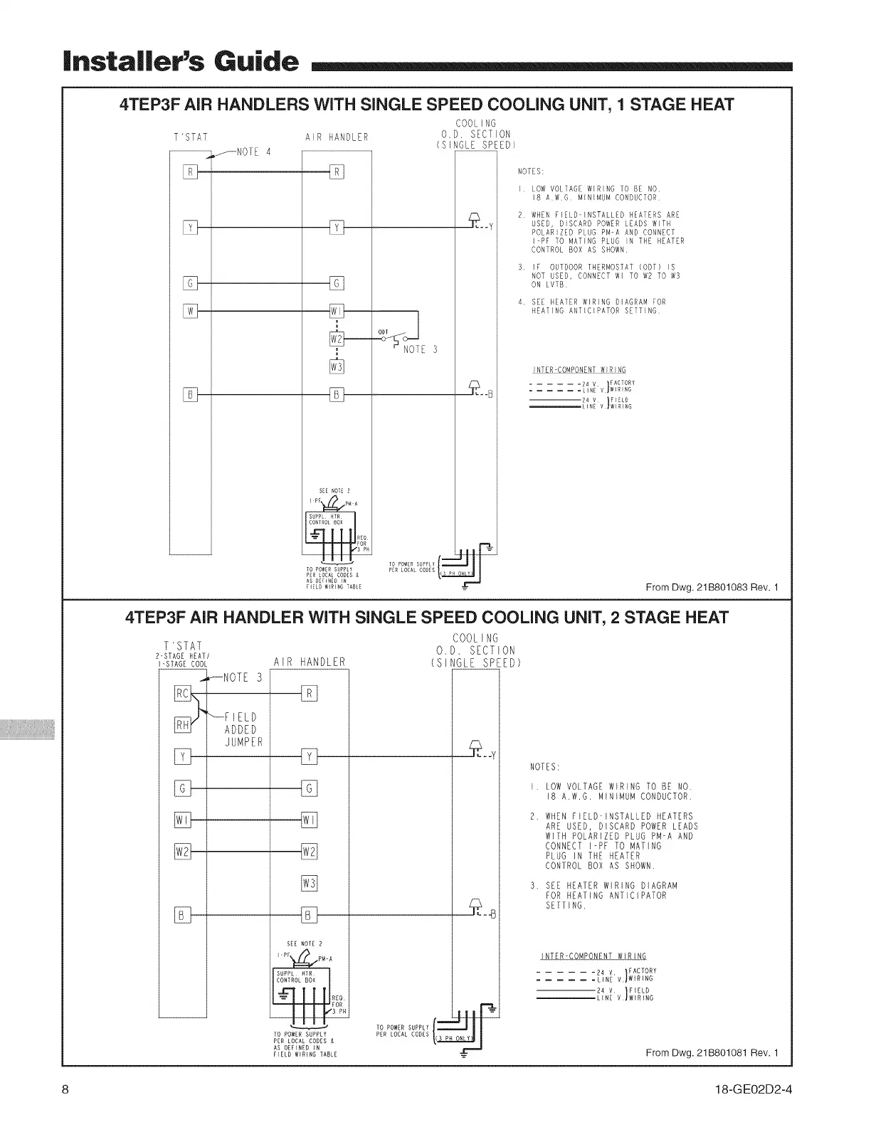 4TEP3F AIR HANDLER WITH SINGLE SPEED COOLING UNIT, 2 STAGE HEAT