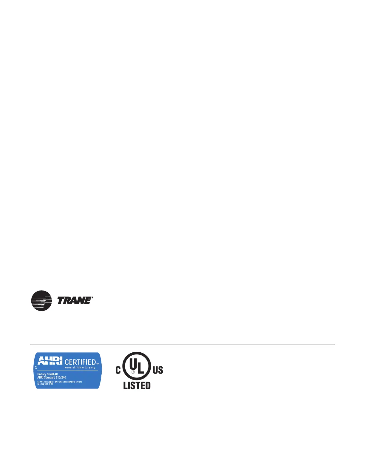 The AHRI Certified mark indicates Trane U.S. Inc. participation in the AHRI Certification program. For verification of individual certified products,