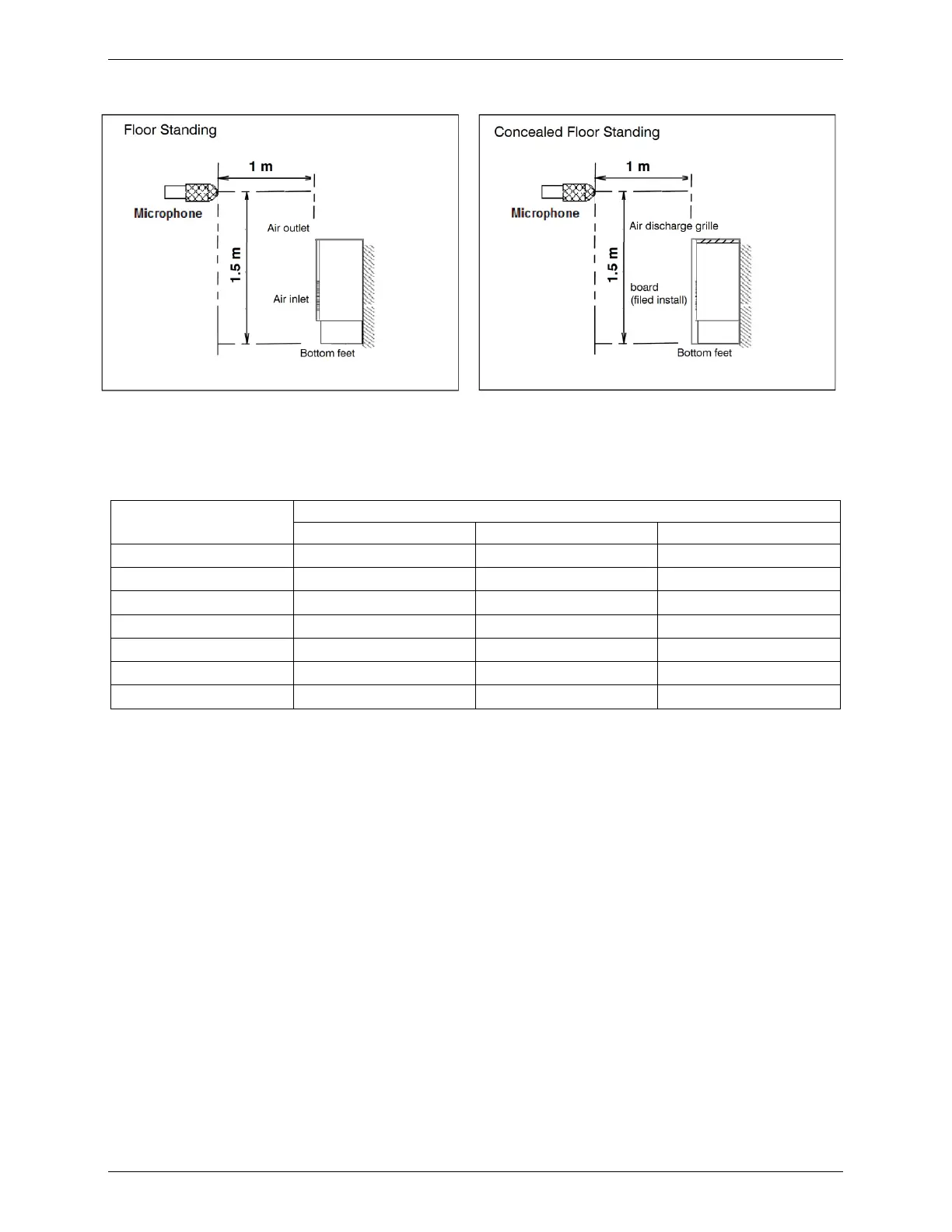 2, Semi-anechoic chamber conversion value, measured at a point 1m in front of the unit at a height of 1.5m.