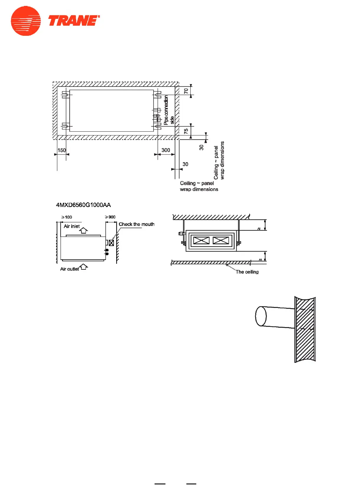 wall-through tube purchased locally. The wall hole shall be with a outward down
