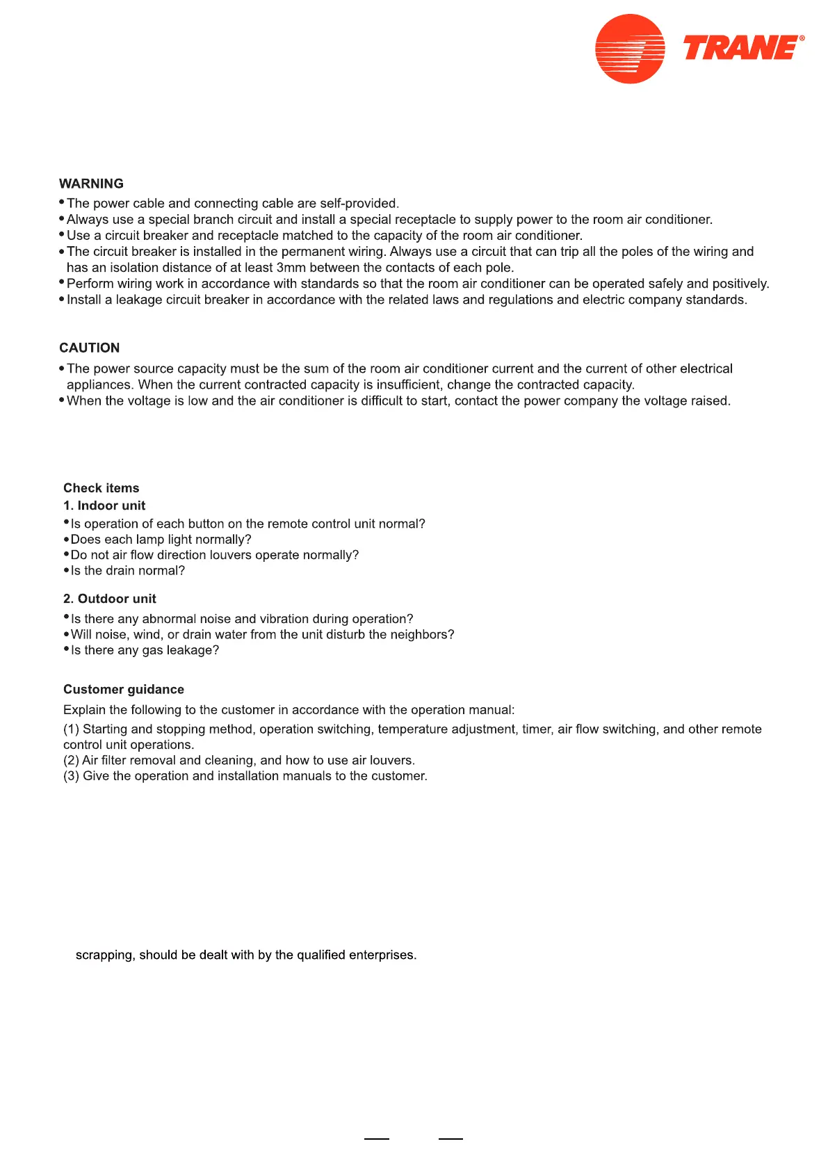 • Please recycle the refrigerant before scrapping, moving, setting and repairing the air conditioning; for the air conditioning