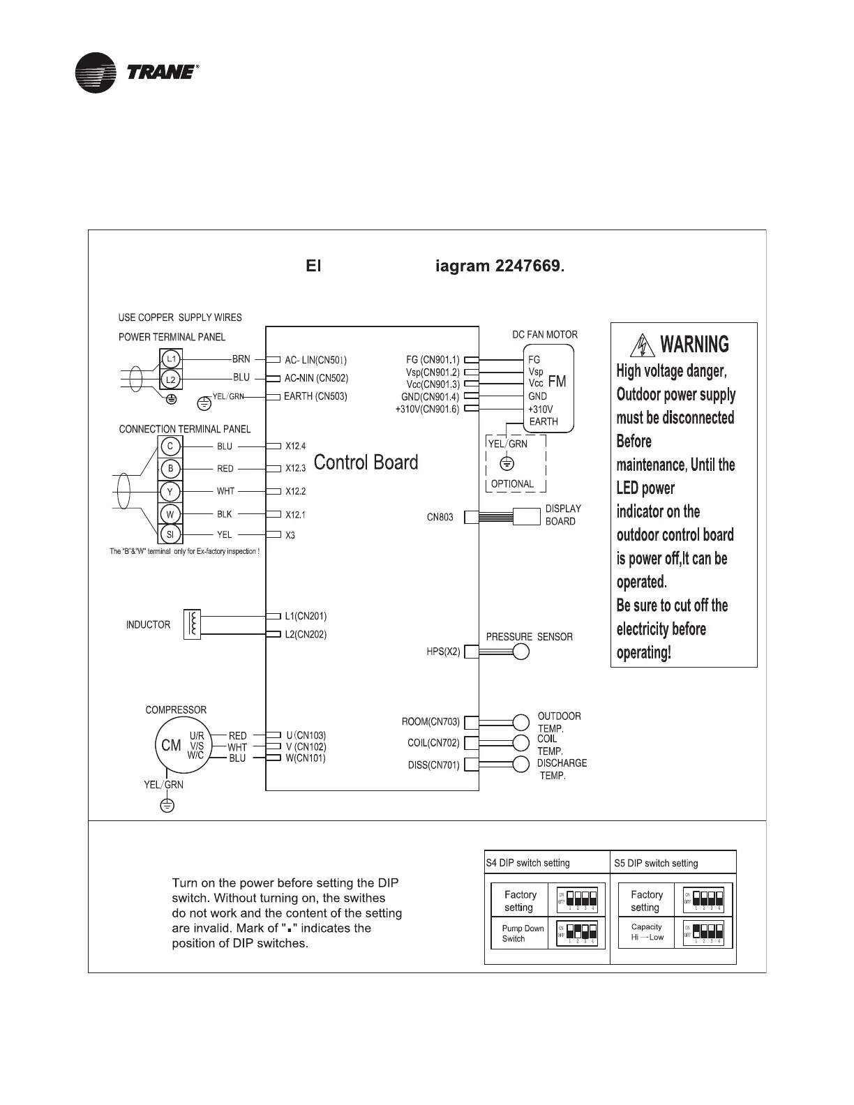 Trane 4TYK8536B1000AA - Wiring Diagrams, Field Settings, and Installation; Wiring Diagrams and Board Identification