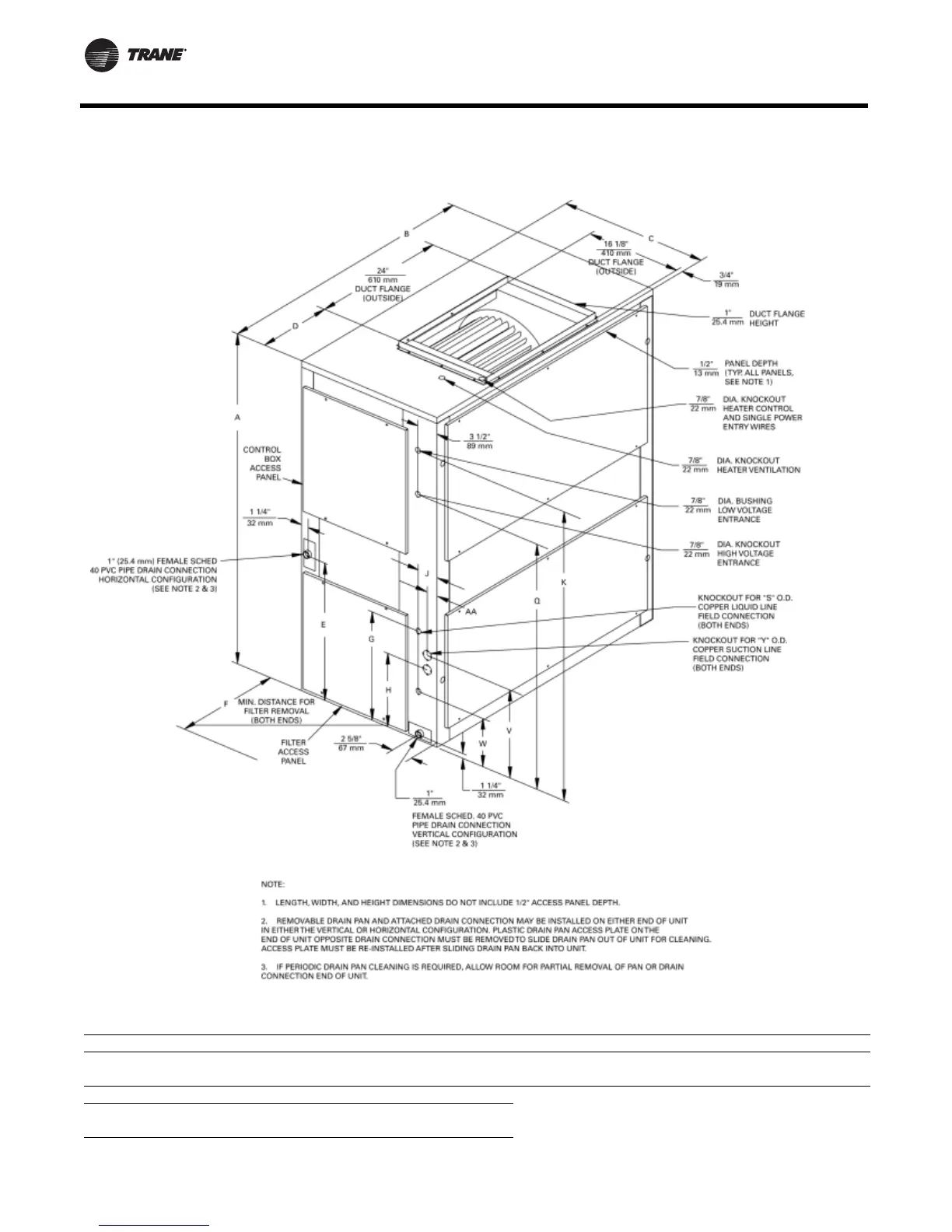 Figure 24. 5 Tons TWE060A, 060B Air Handlers. All dimensions are in inches.