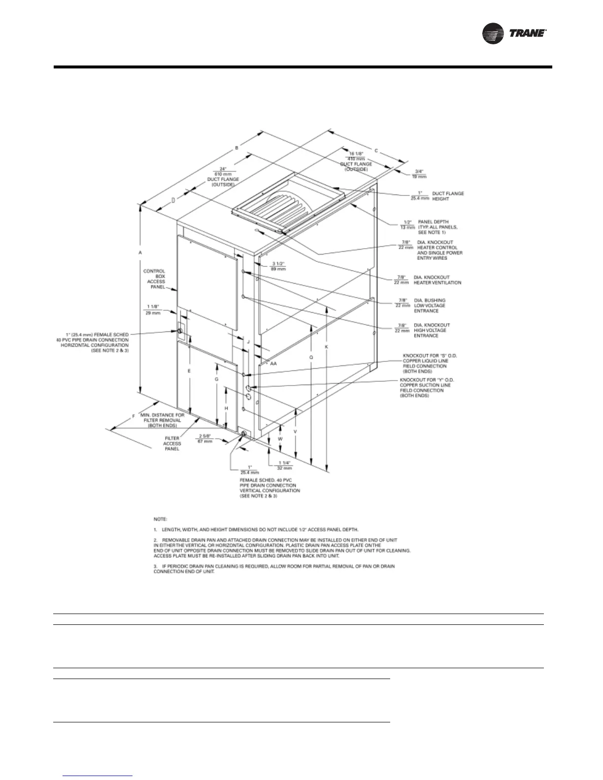 Figure 25. 7½ & 10 Tons TWE090A, 120A; TWE090B, 120B Air Handlers. All dimensions are in inches.