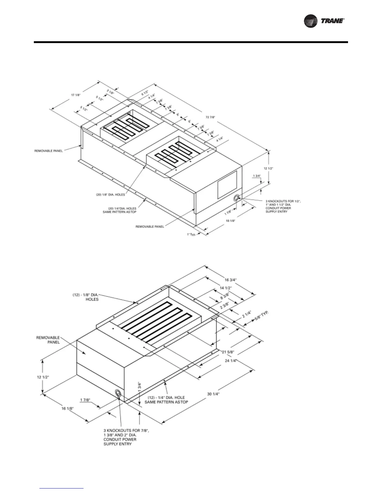 Trane 7½ - 20 Tons - Dimensional Data - Accessories: Electric Heater