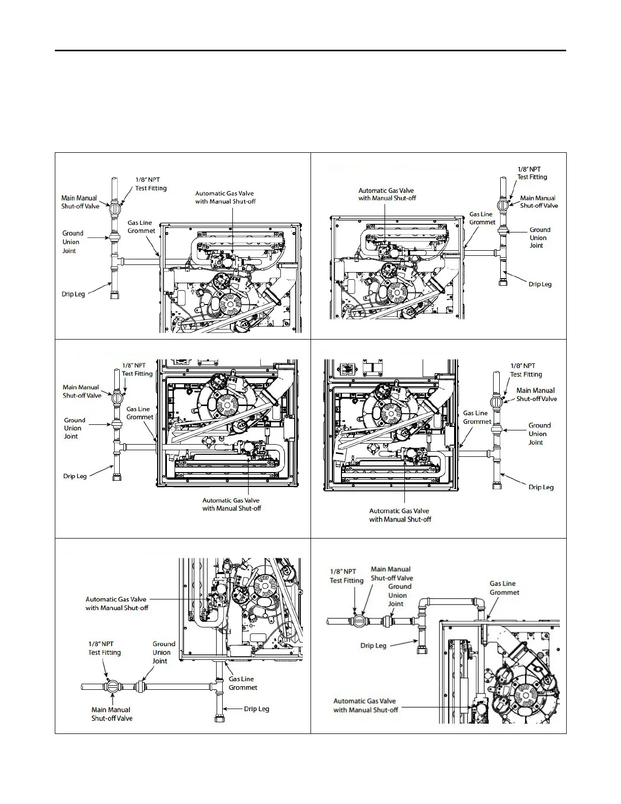 with the grommet from the default location. The upflow furnace default is left side gas piping. The downflow furnace default is right