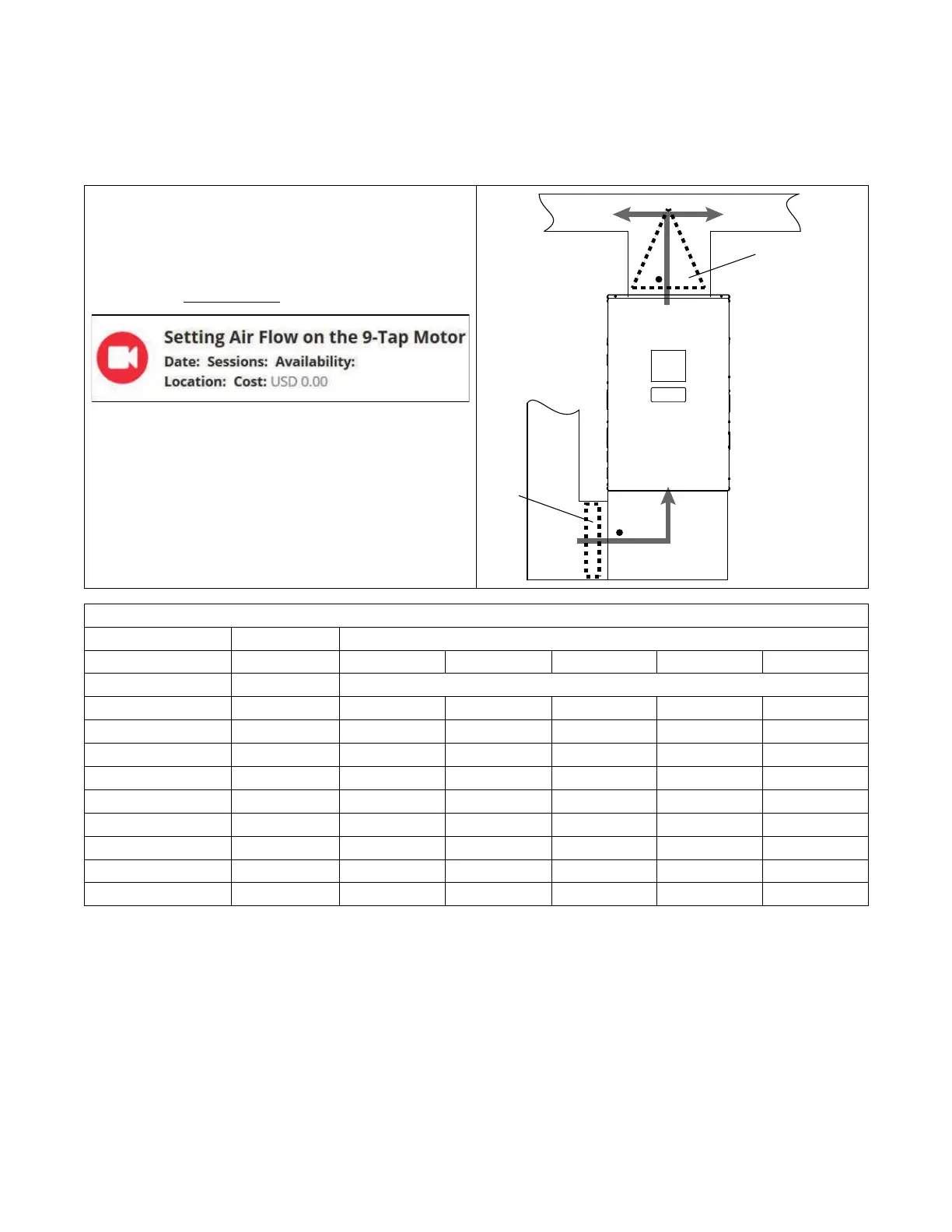 appropriate airflow table in the Airflow Tables section for the furnace