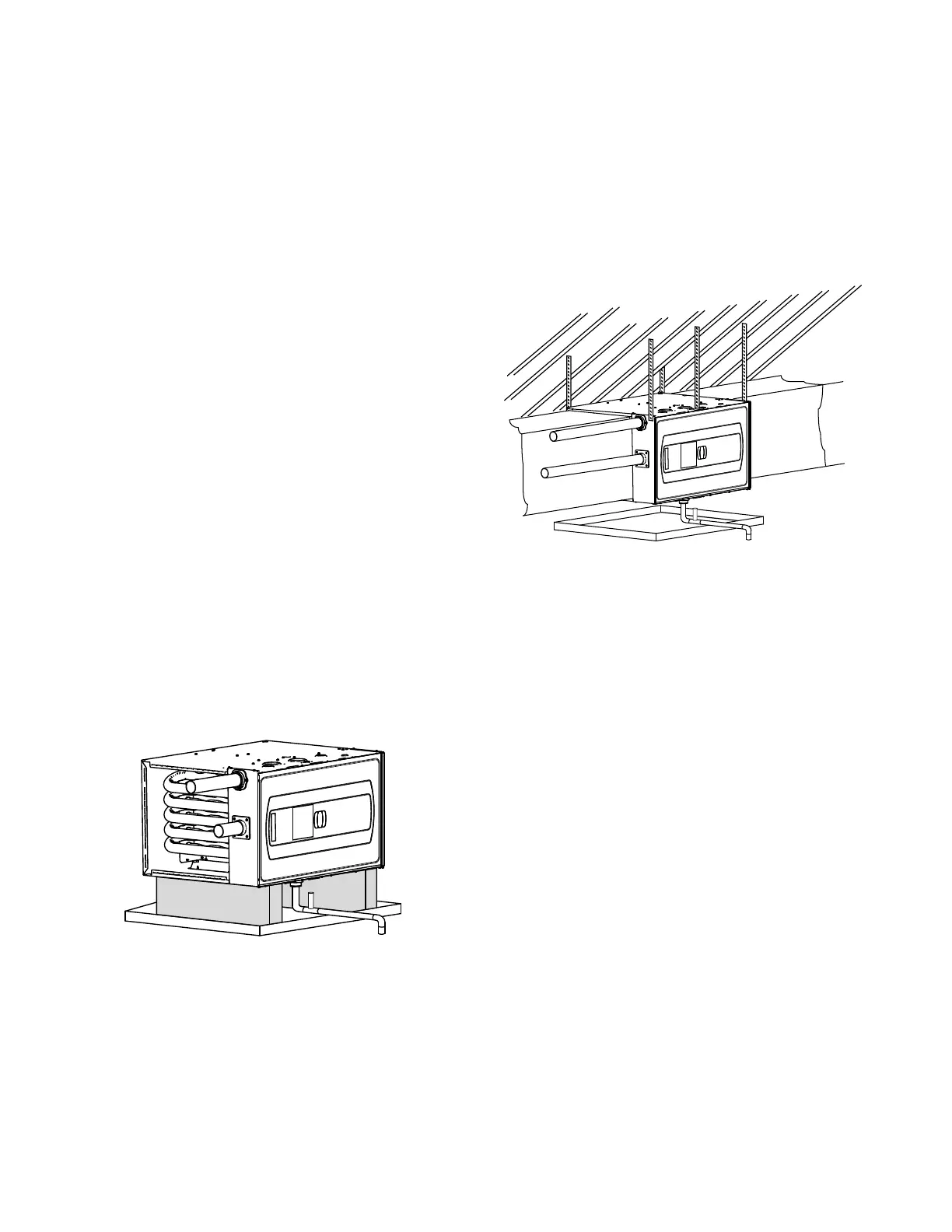 The furnace may be installed hanging in a hanging
