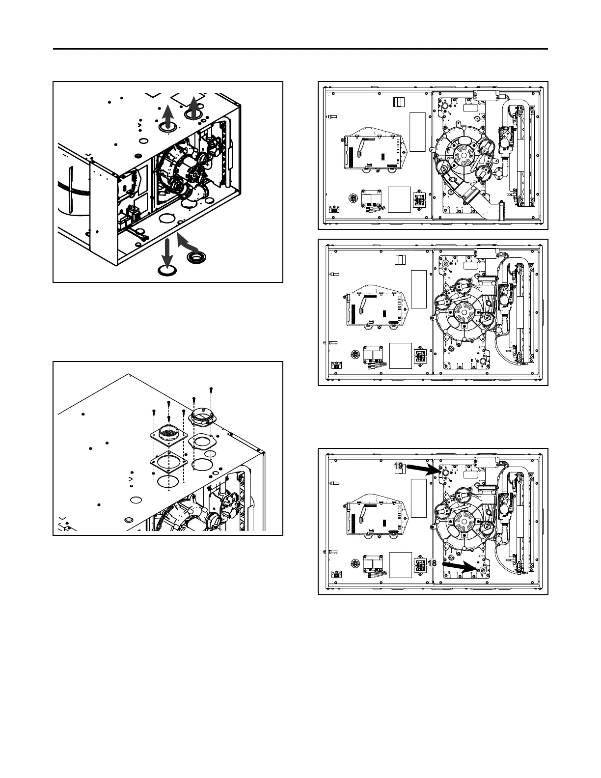 18. Remove condensate drain plug from top right