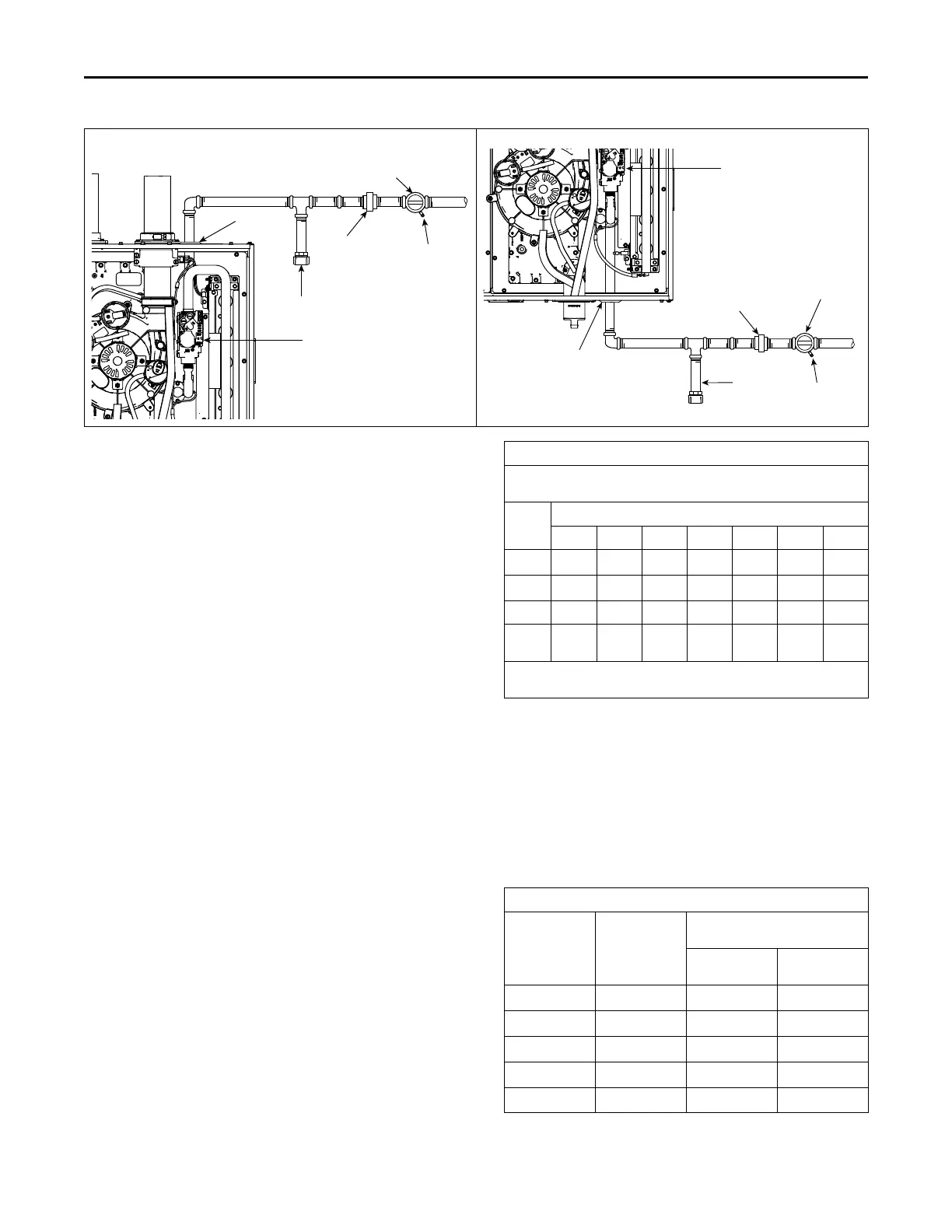 Refer to the piping table for delivery sizes. Connect gas