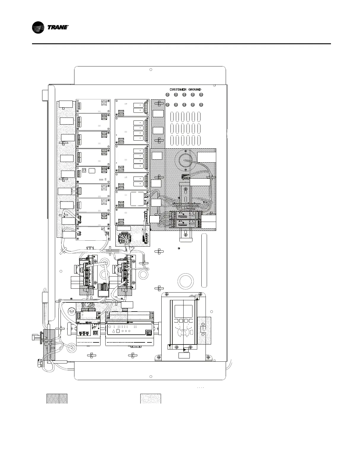 Figure 27. Control panel: Tracer AdaptiView main unit assembly (showing low voltage and higher voltage areas for