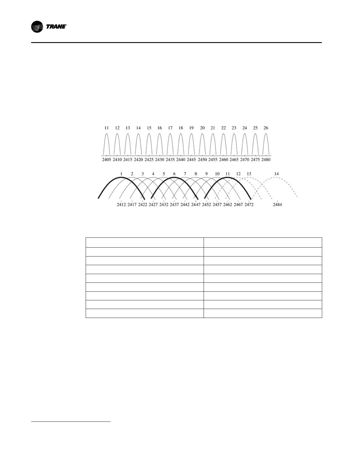 Other Zigbee channels not listed in table above can be selected using Tracer TU (Wireless tab >