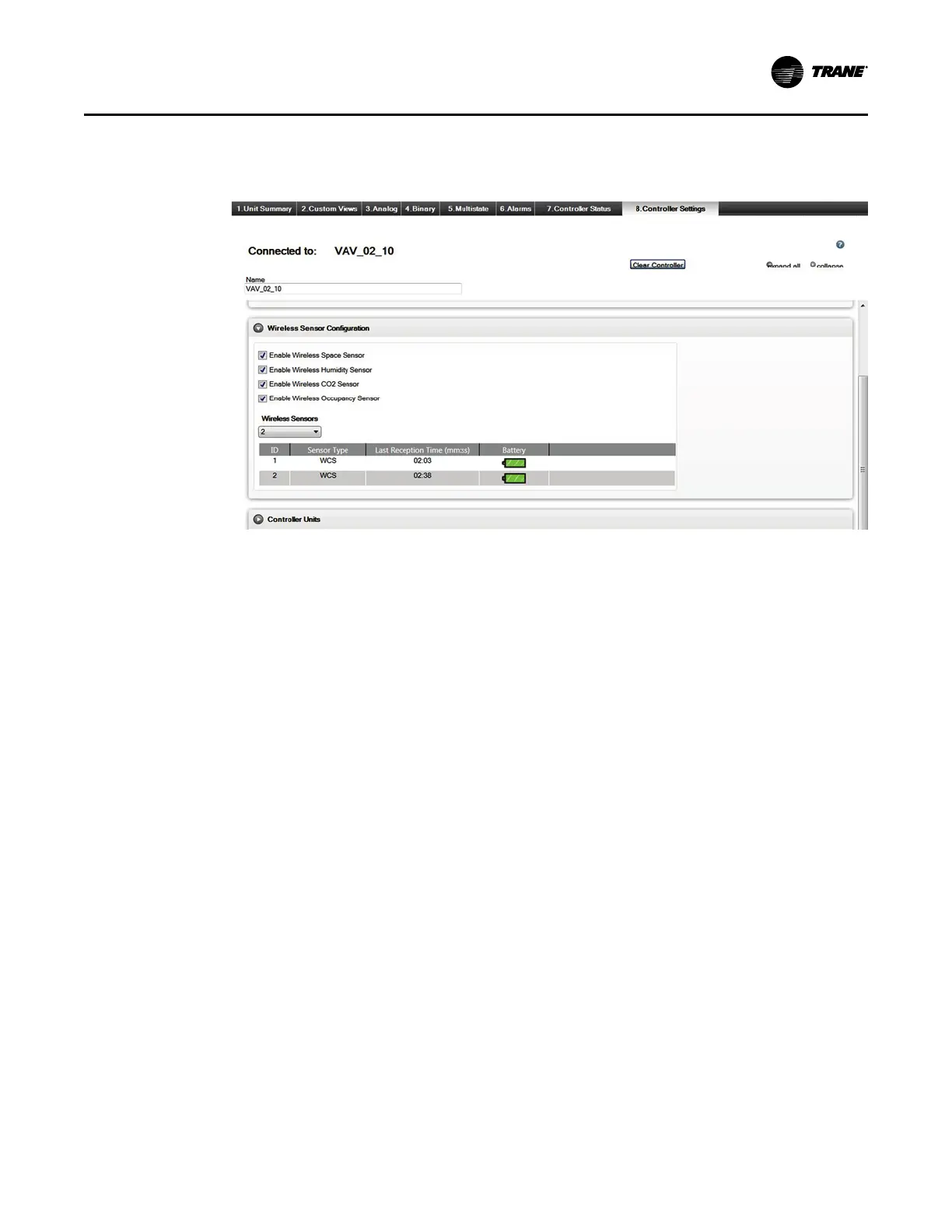 On the Controller Settings tab, under Wireless Sensor Configuration as shown in figure below, when
