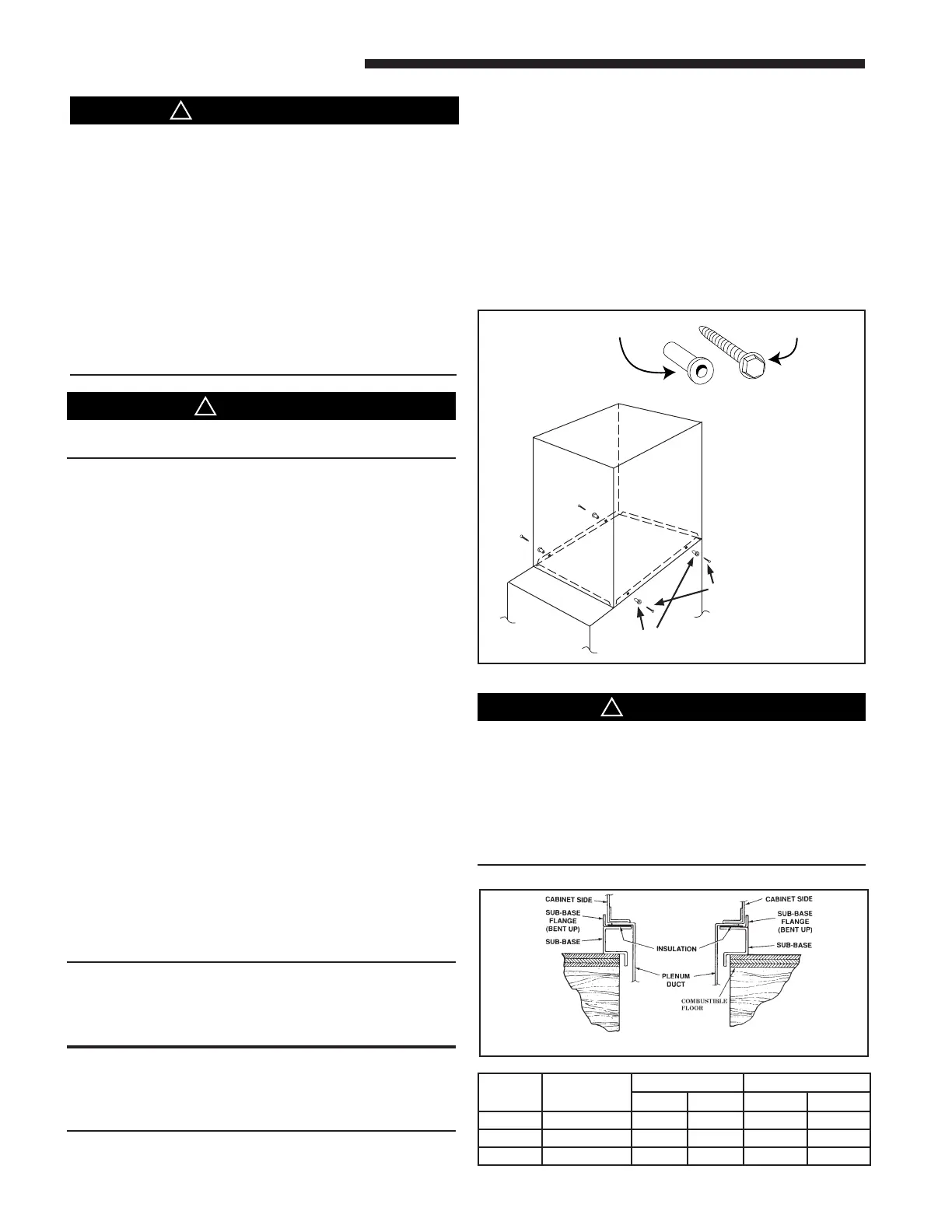 Trane AUH1B080A9421B - Location and Clearances; Upflow Installation; Downflow Installation; Required Floor Opening