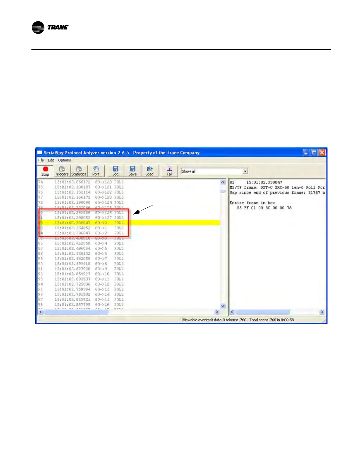 Figure 21, p. 32 shows an example of a capture with a single Trane BACnet