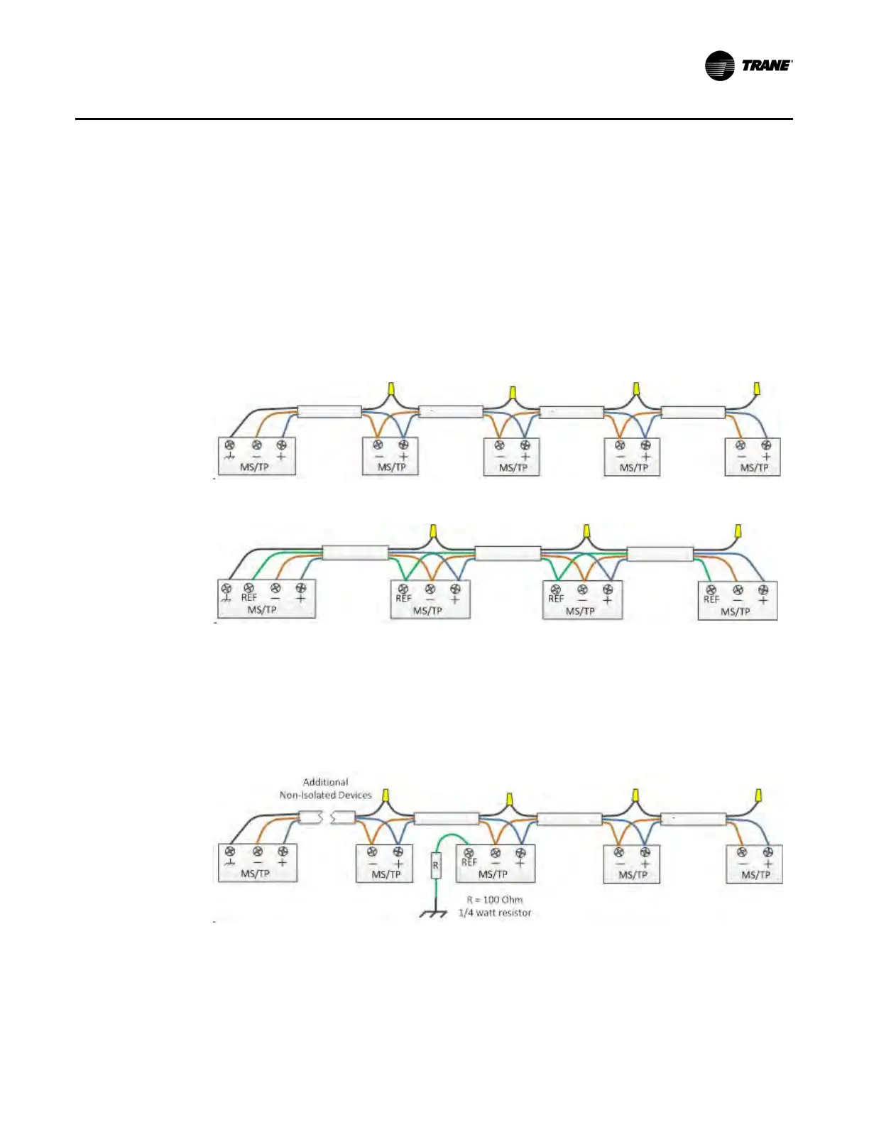 Trane recommends that isolated and non-isolated device types are not mixed on a single link. Run