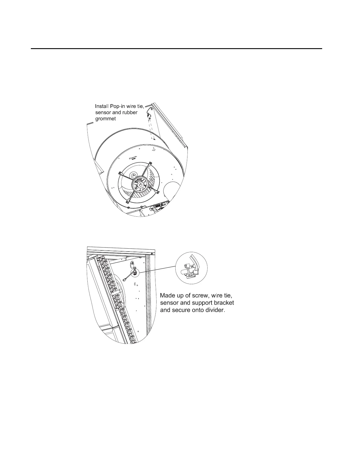 Install the Mixed Air Sensor with grommet, secure with pop-in wire tie. Connect to exiting