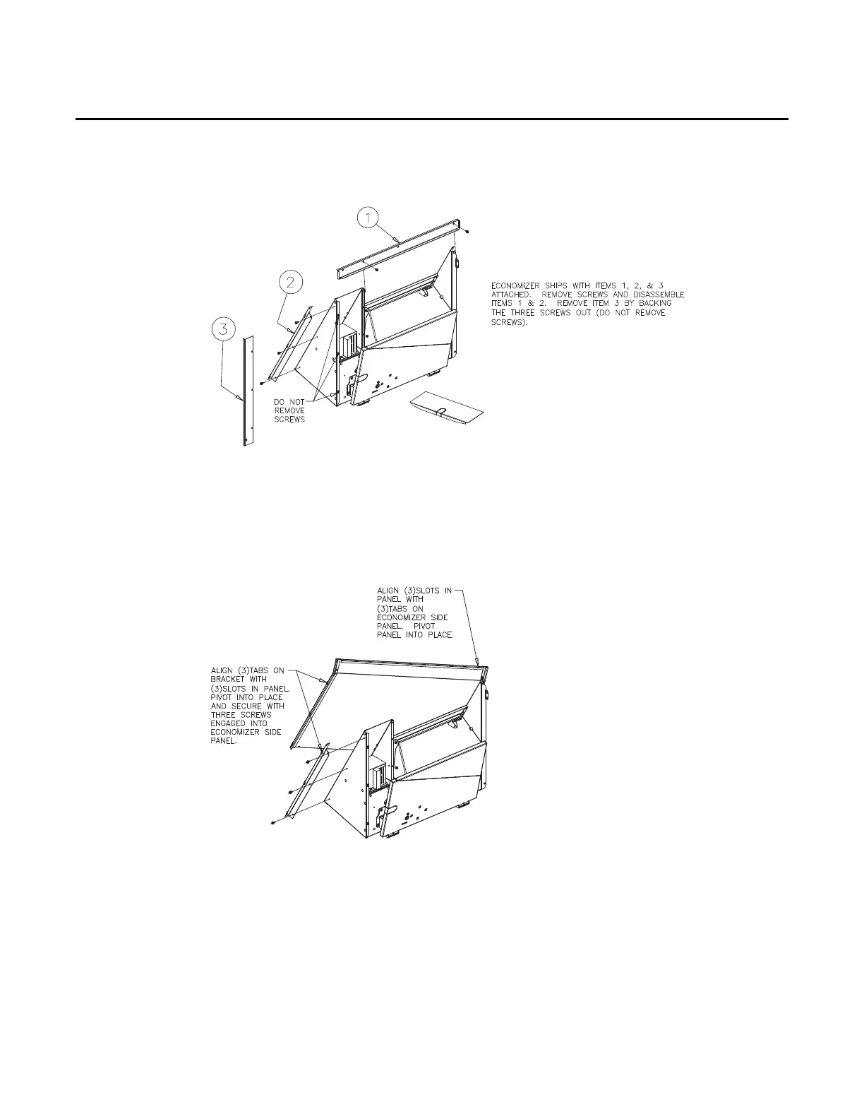 For Horizontal Installation, assemble end panel to the economizer. Refer to Figure 3 for