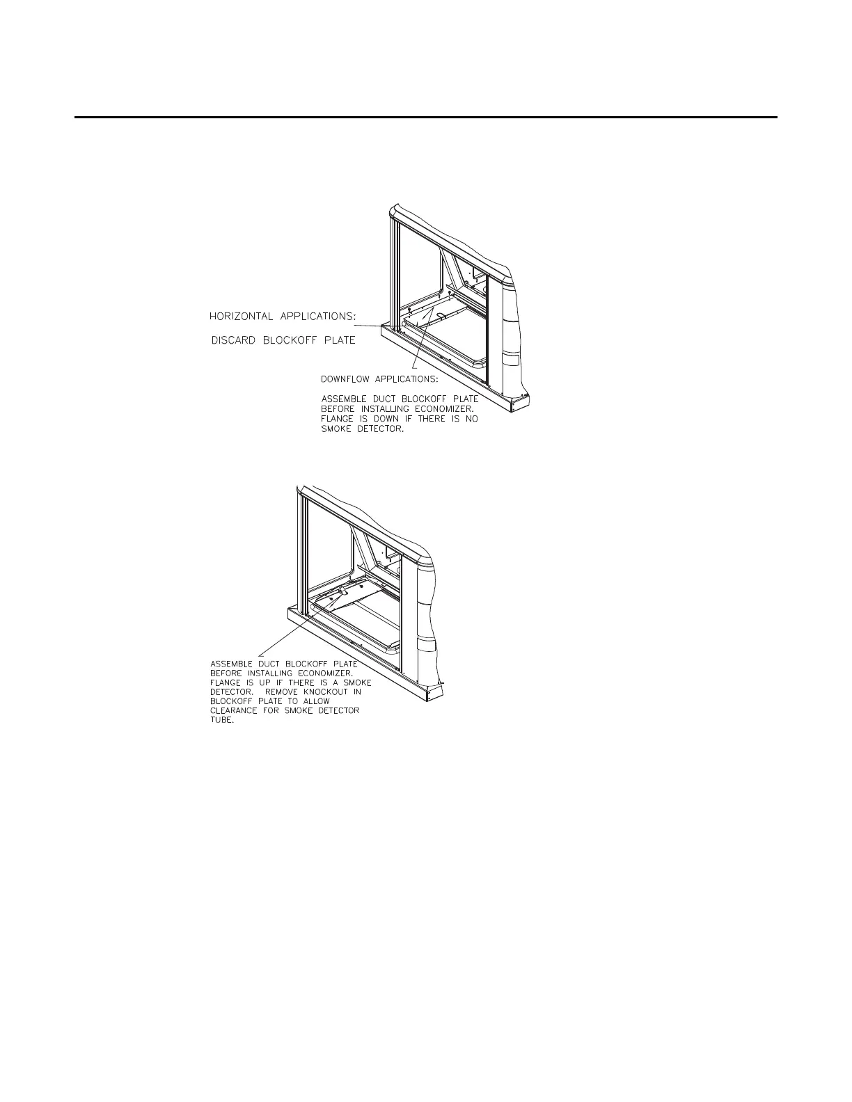To install the economizer, lift into position by fitting the upper left hand corner around the channel