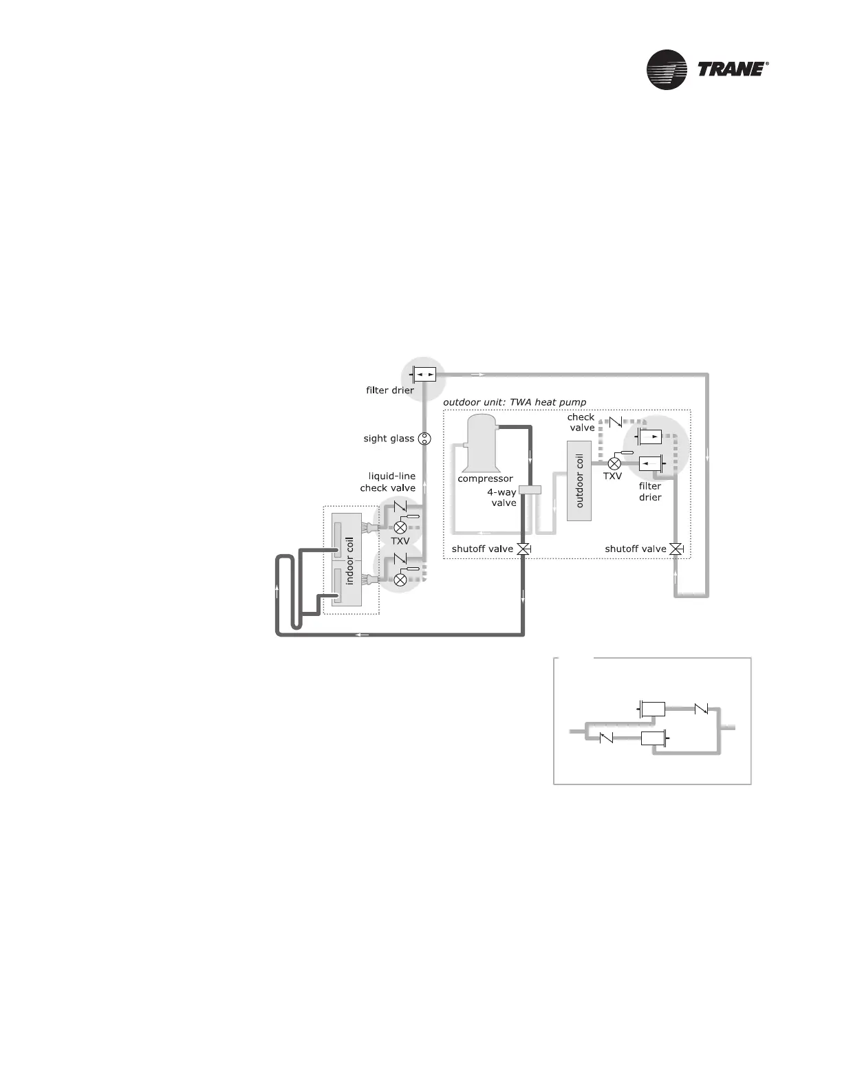 Figure 5. Placement of liquid-line check valves in TWA heat-pump applications when paired