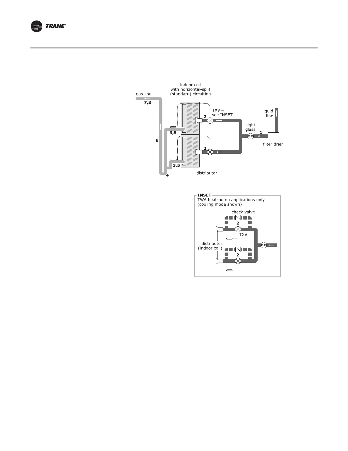 Figure 8. Indoor coil with two distributors (single-circuit TTA/TWA units)