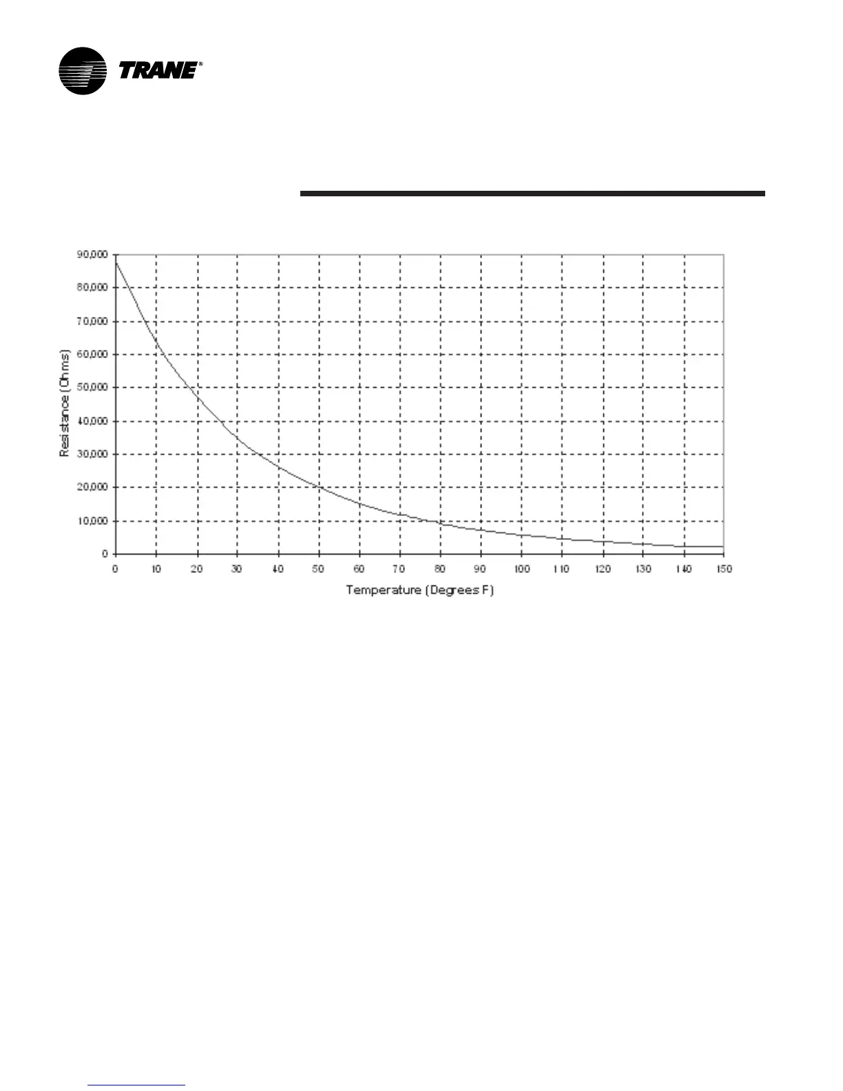 Figure O-SO-14. Resistance temperature curve for the zone sensor, entering water temperature sensor, and discharge air sensor.