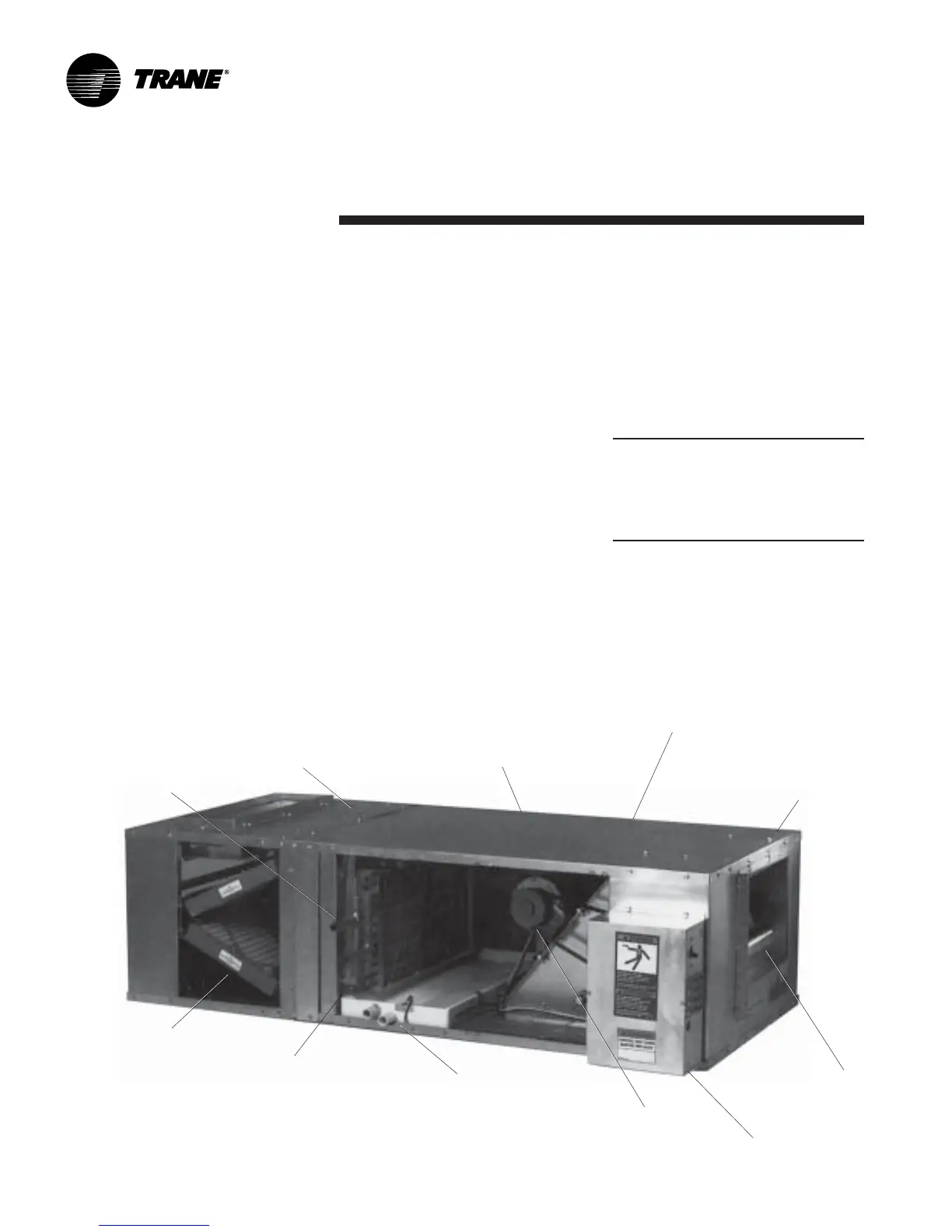 Figure I-GI-1. Blower coil air handler unit components. Model BCHC, horizontal unit, is shown.